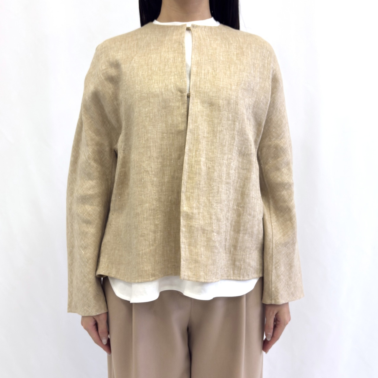 【特別提供価格】リネン ノーカラージャケット:84304-01653-2301《ジョルネア⦆