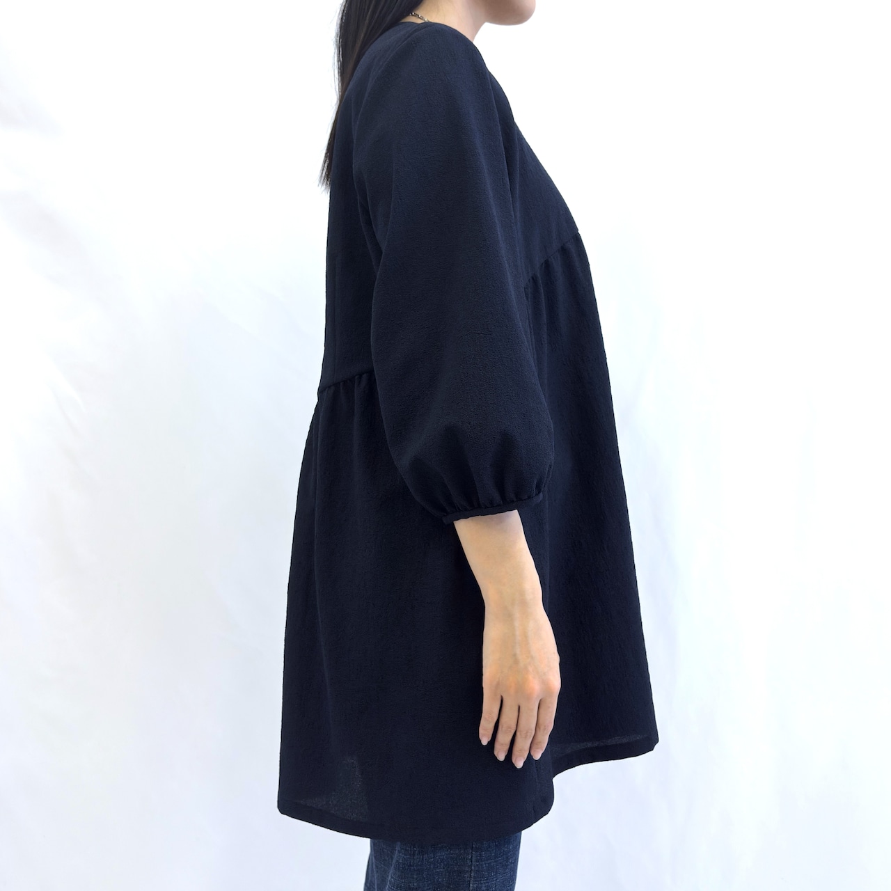 身体のラインを拾いにくく、ヒップまで隠れるチュニック丈なのでナチュラルに体型カバーできます。