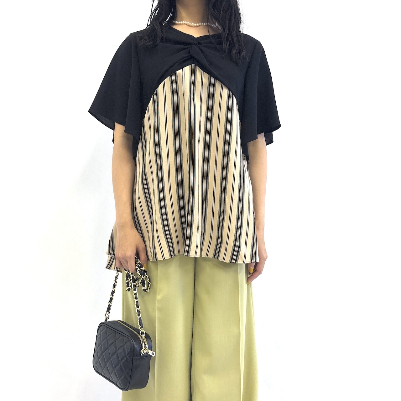 【特別提供価格】ケープ風 ストライプブラウス:84533-01436《ジョルネア⦆