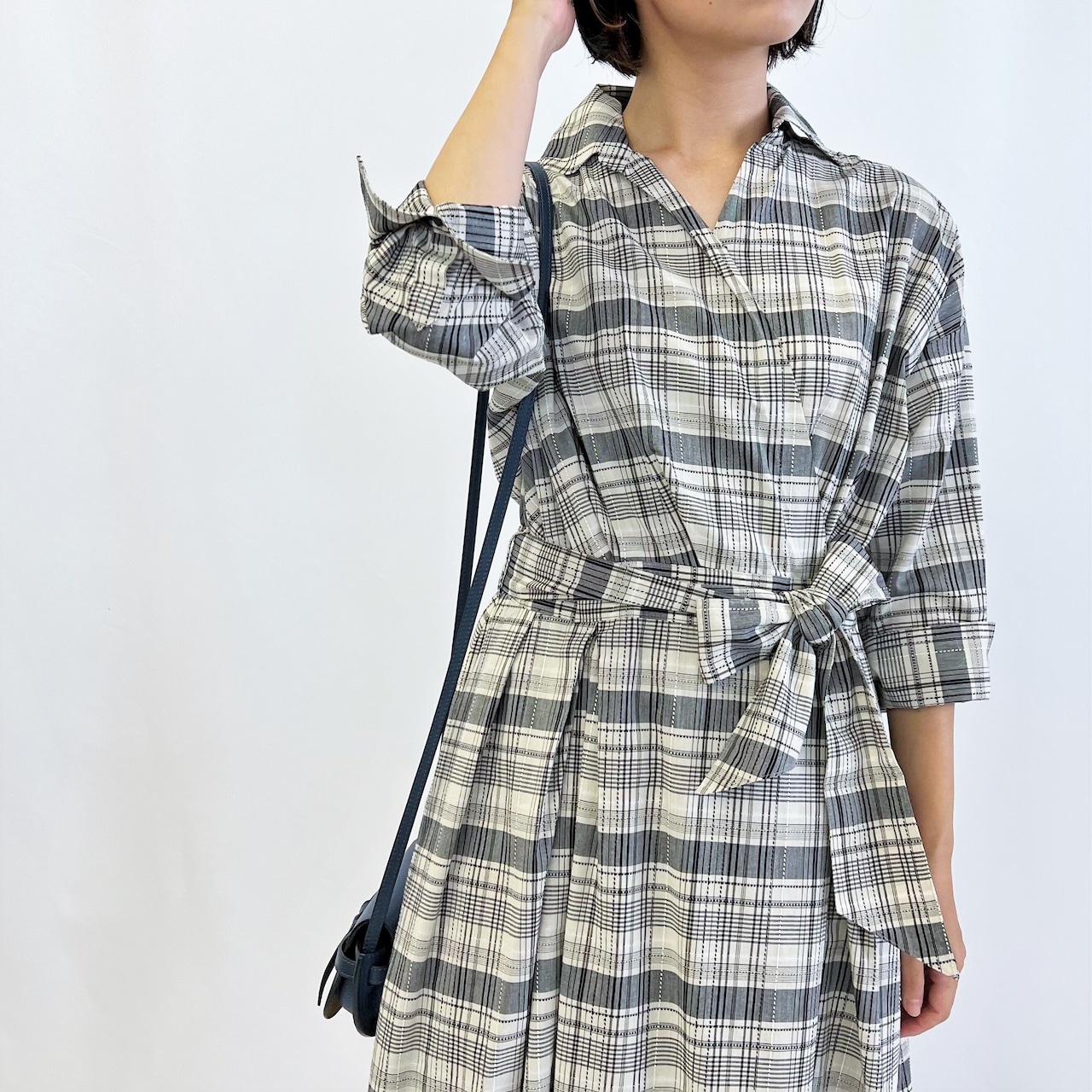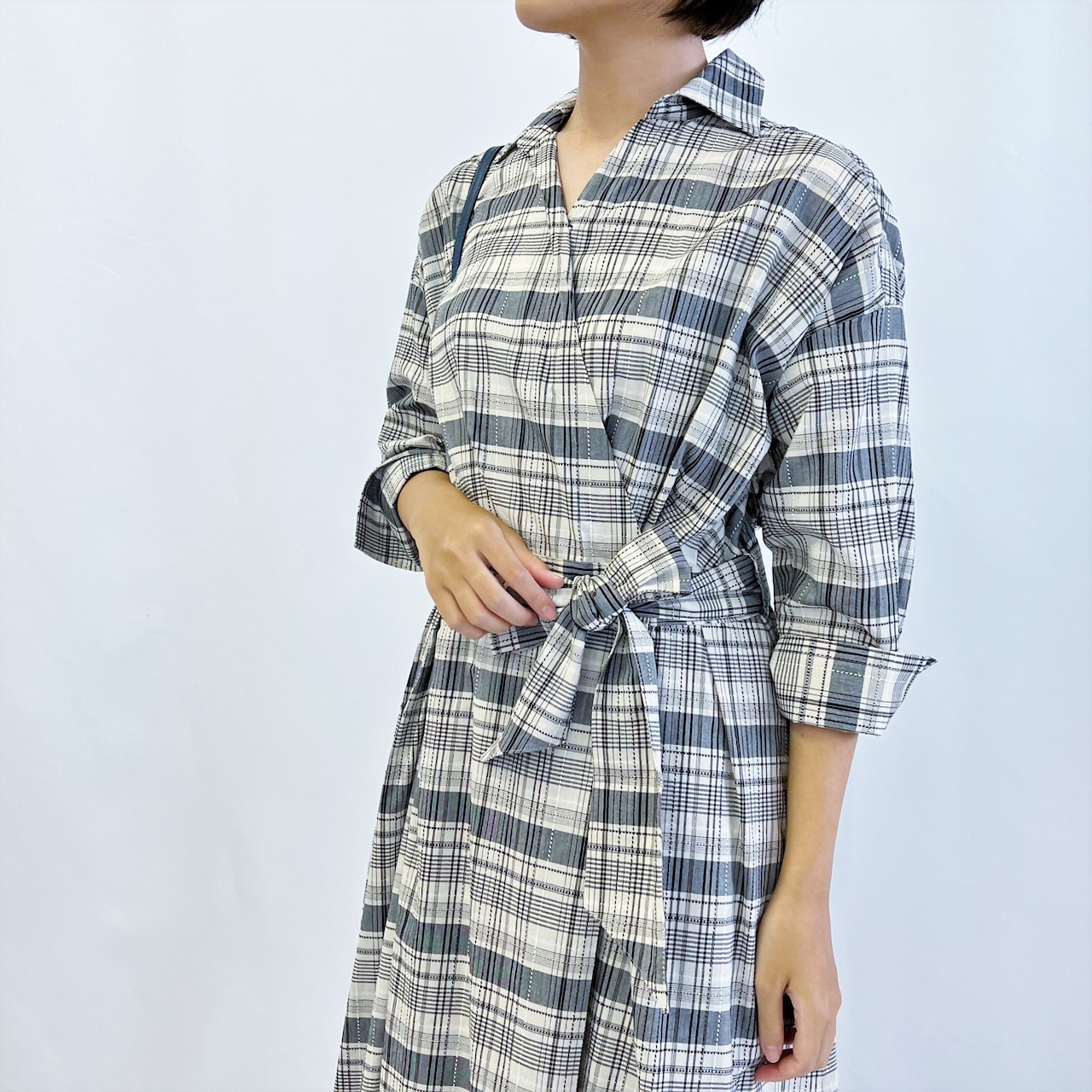 【特別提供価格】チェック柄カシュクールシャツワンピース:84307-01656《ジョルネア》