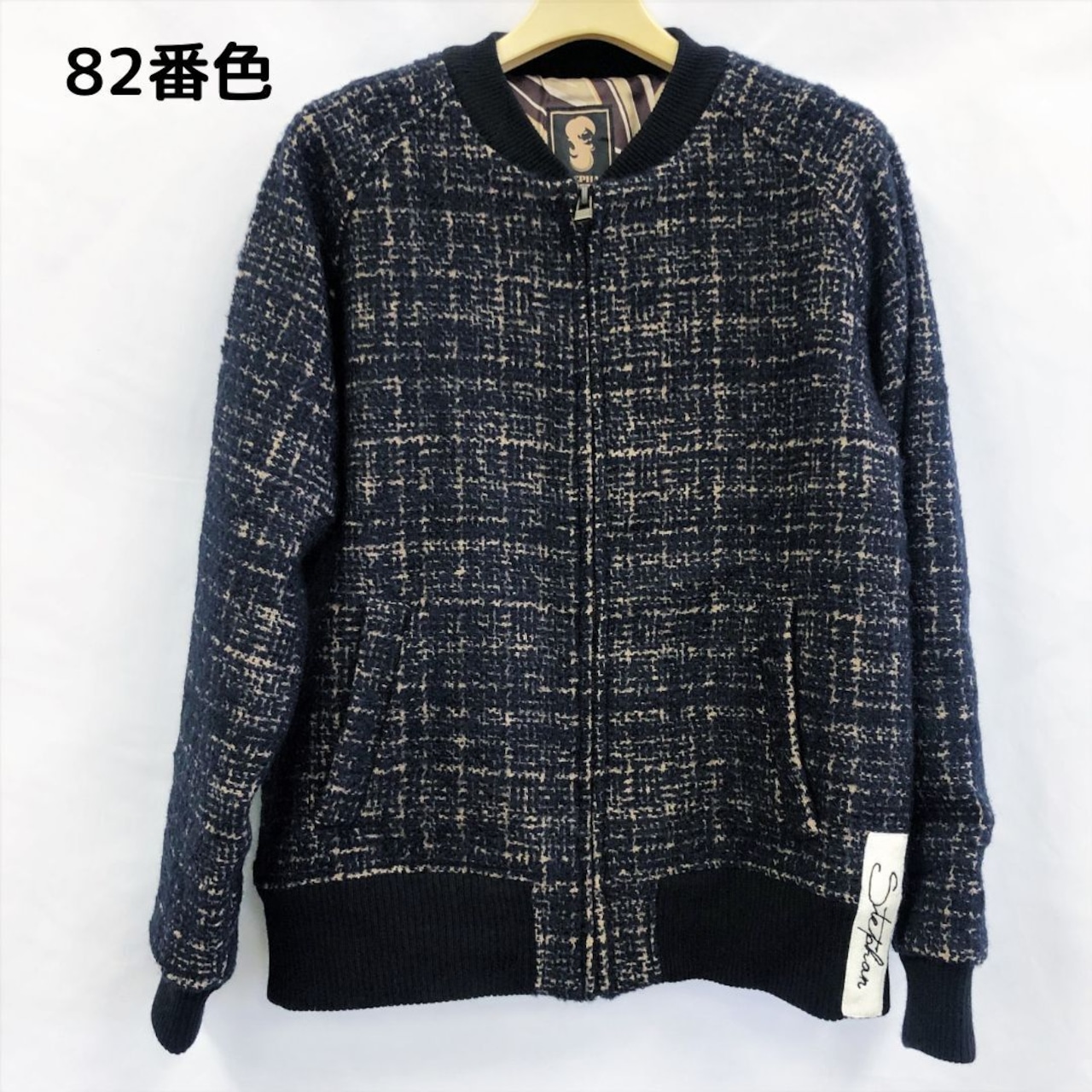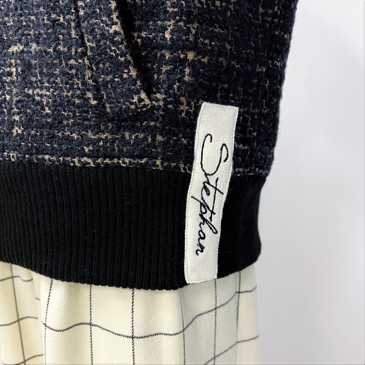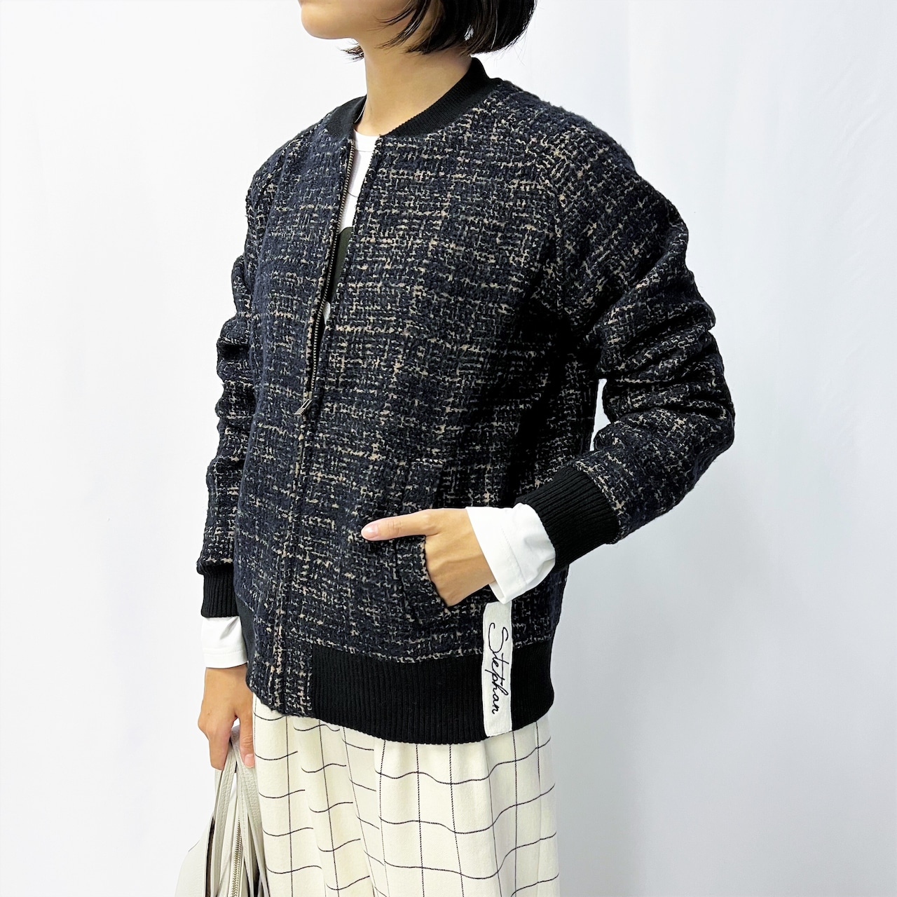 ツイード素材が珍しい、落ち着いた雰囲気のジャンバージャケット。カジュアルになりすぎないデザインが魅力。ショート丈でバランスのとりやすいシルエットです。脇に入れたSTEPHANのブランドロゴがアクセントになってます。