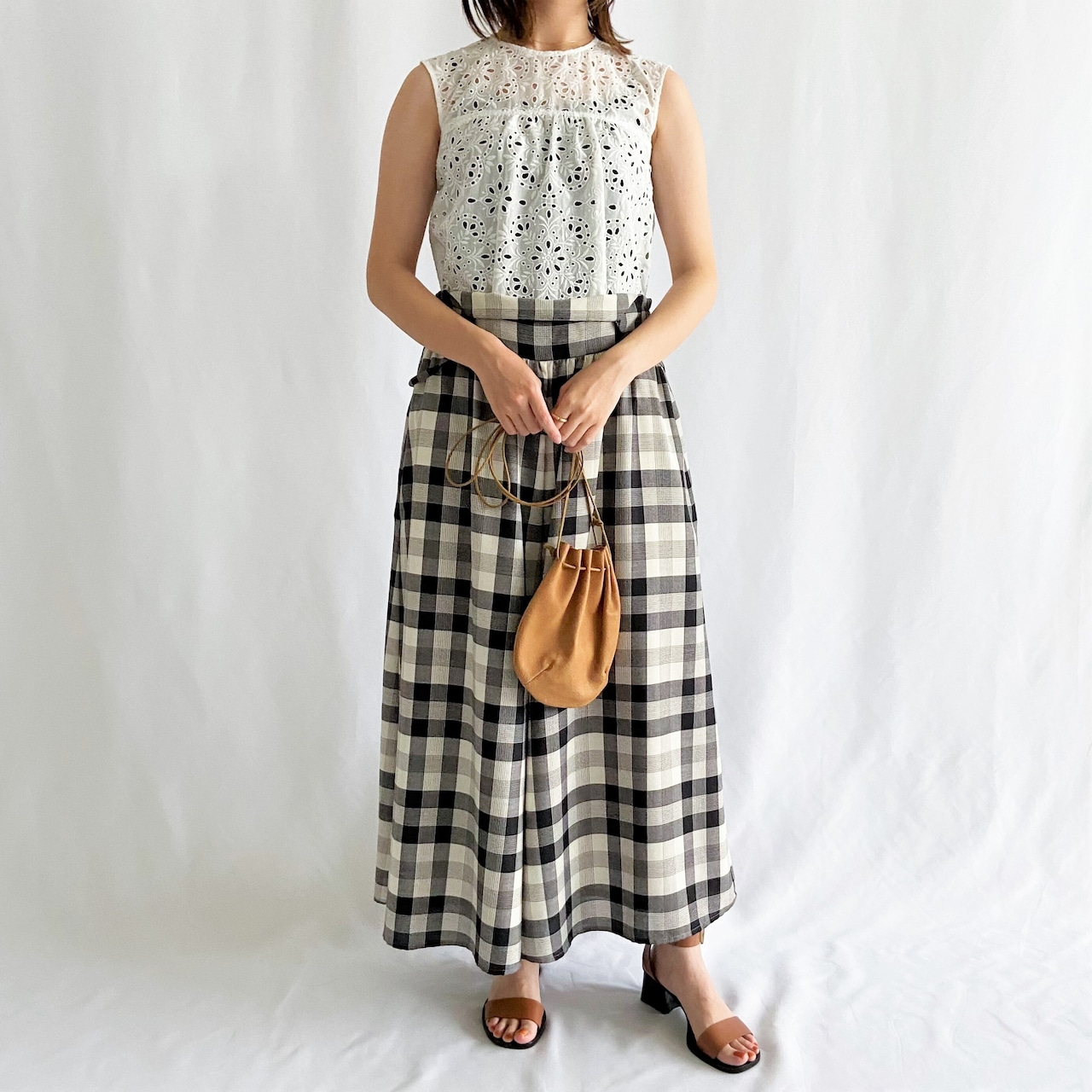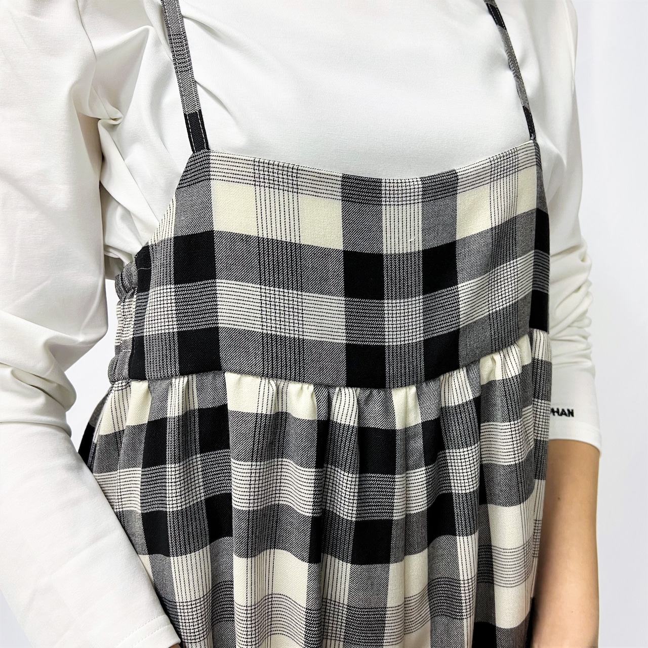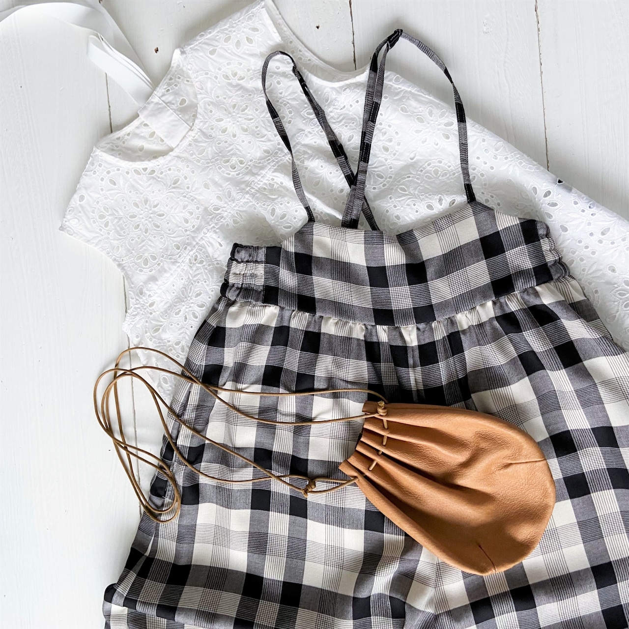 大きめのざっくりとしたチェック柄が目を惹くサロペット。