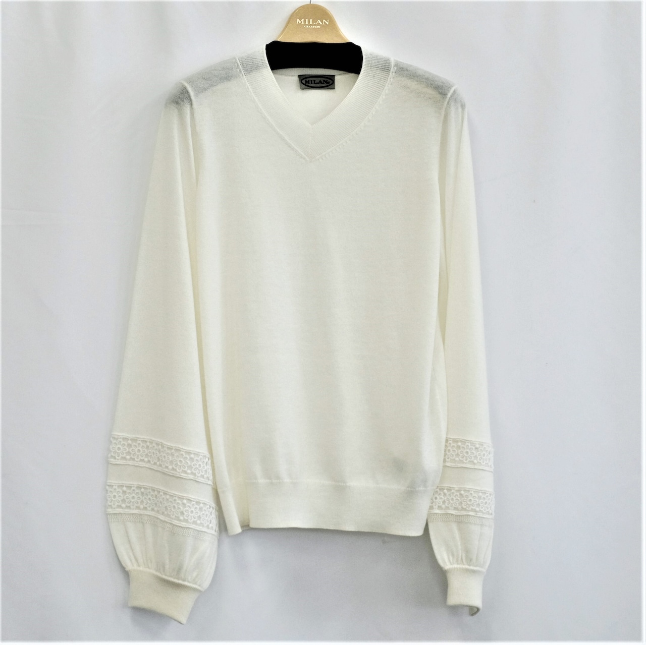 【特別提供価格】袖レース刺繍Vネックカットソー:38223-28019《ミラン》