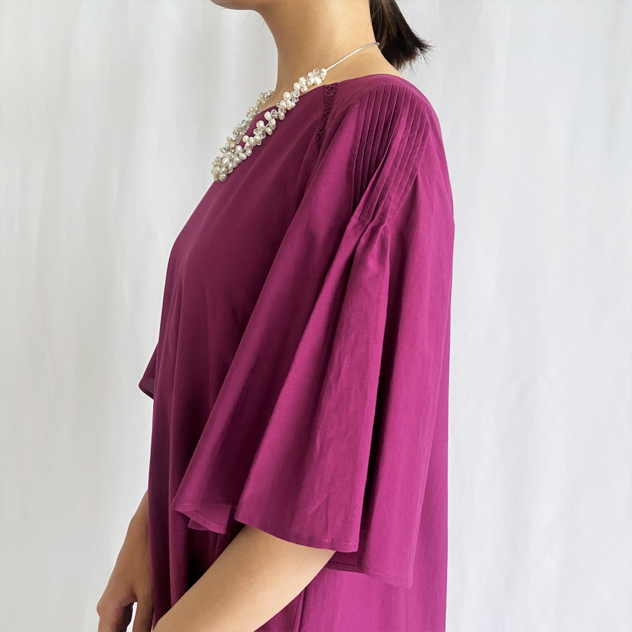 シルクが入った生地で、さらりと肌離れの良い素材です。