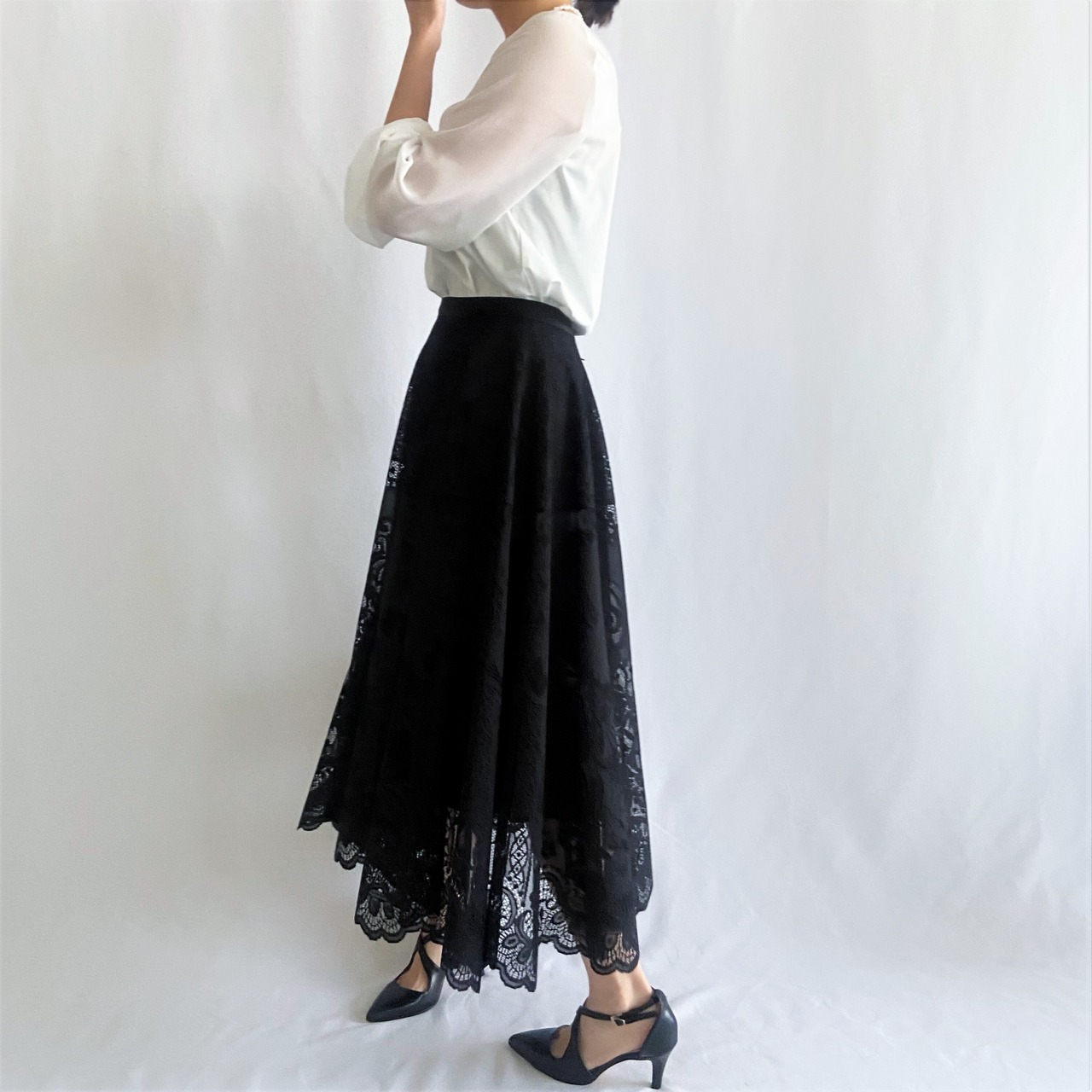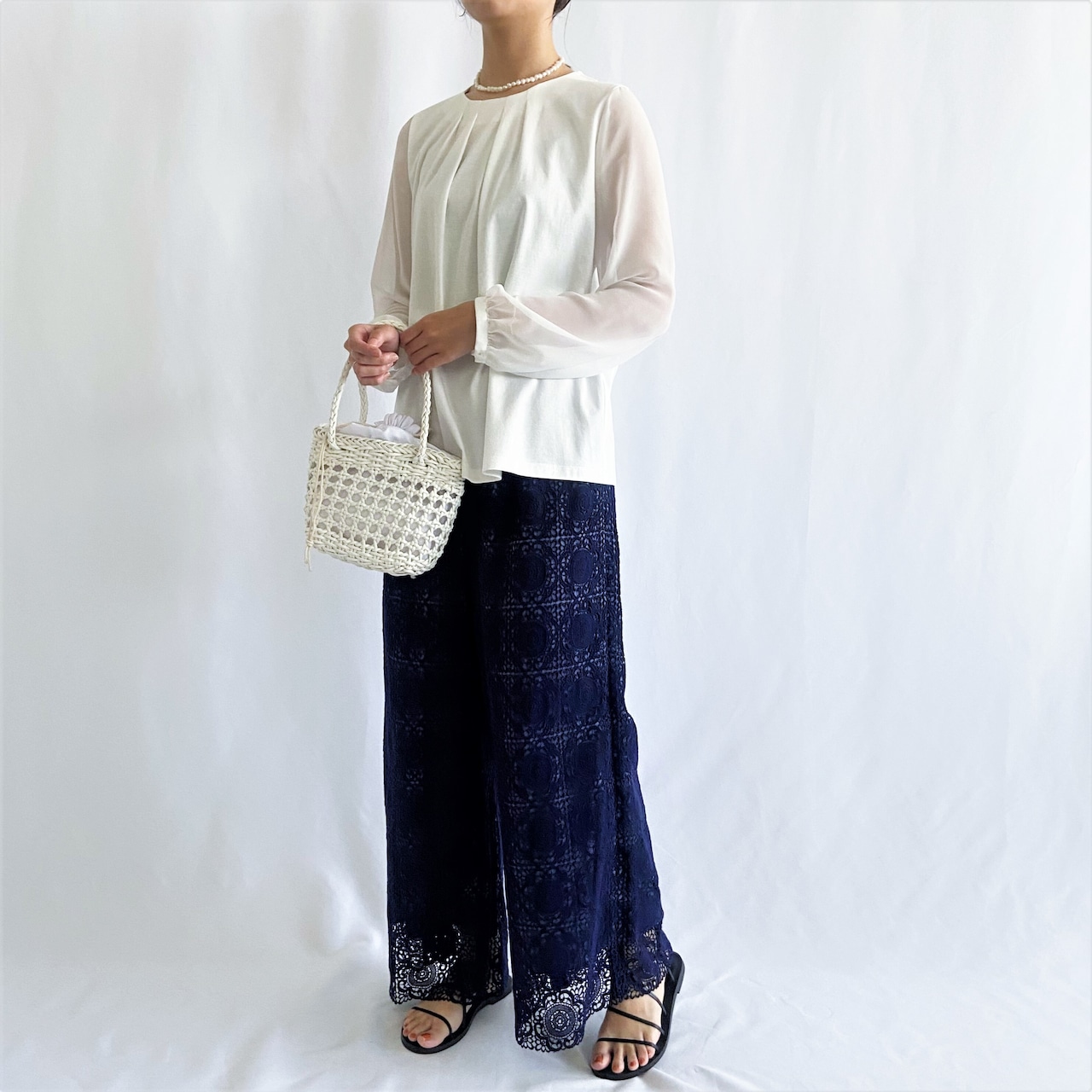 シースルー素材の上品な透け感の袖がポイントのカットソー。
