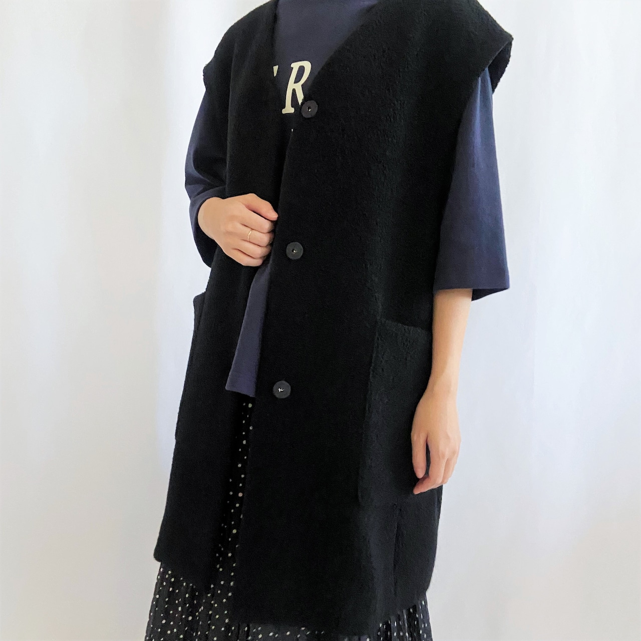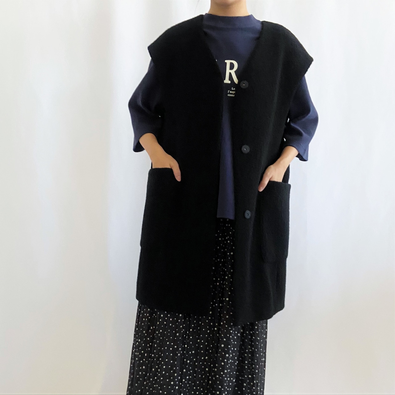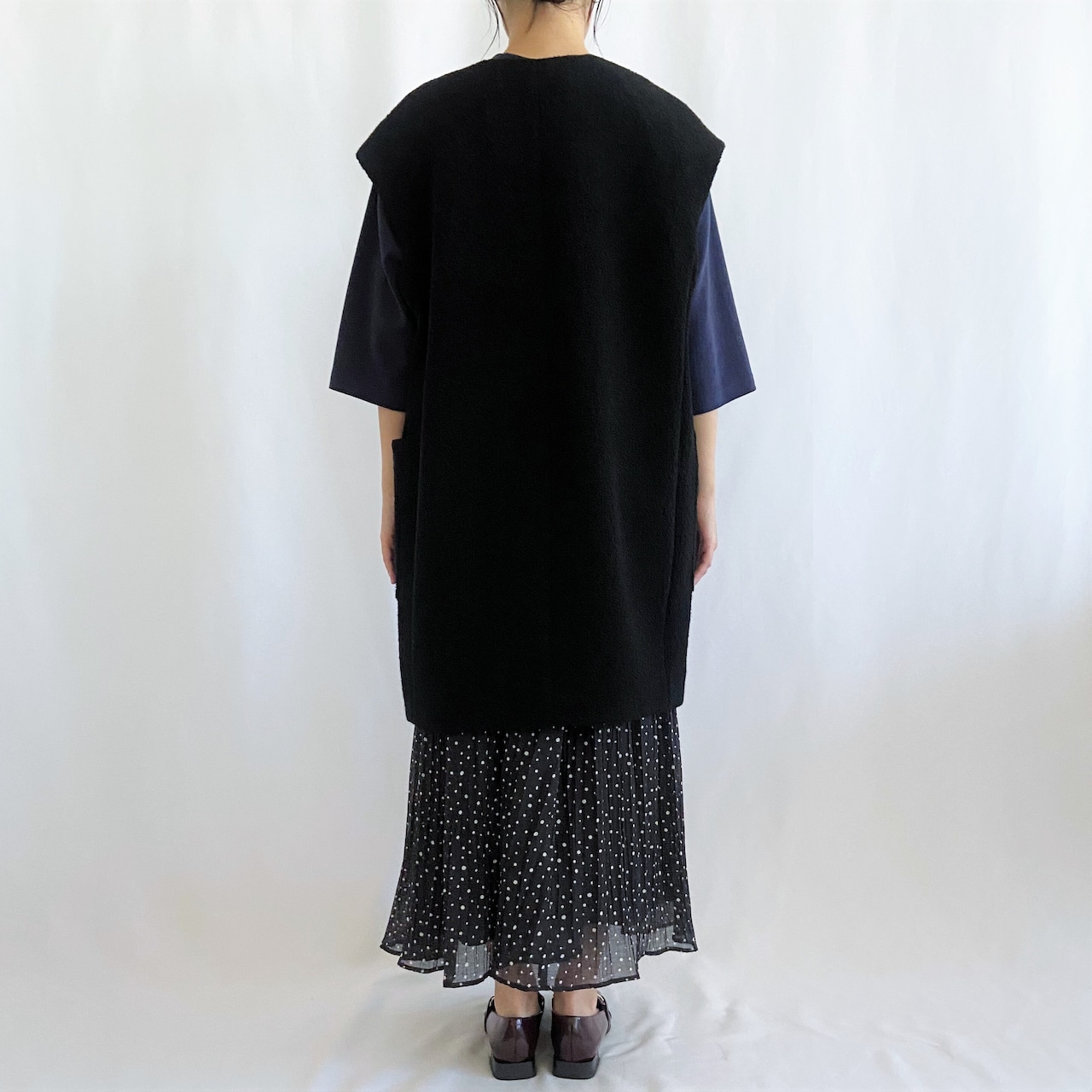 《ジョルネア》ブークレ ノーカラーロングボアベスト:85390-04413(2303P)