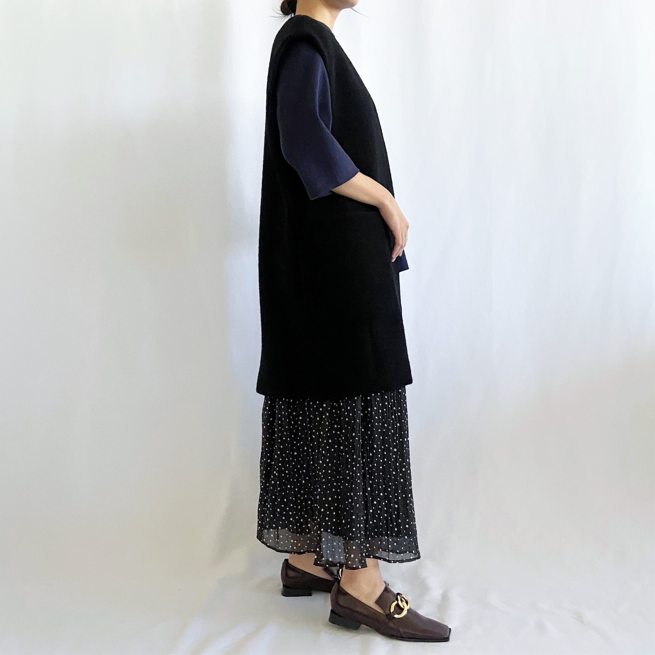 スウェットなどのアイテムとはもちろん、ワンピースにも合わせやすく幅広いスタイリングが叶います。
