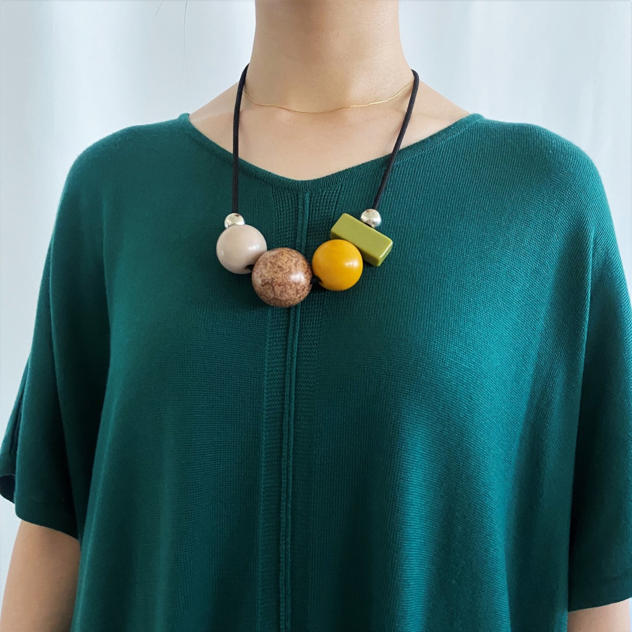 惑星を連想させるような、大ぶりのパーツを使用した存在感のあるネックレス。