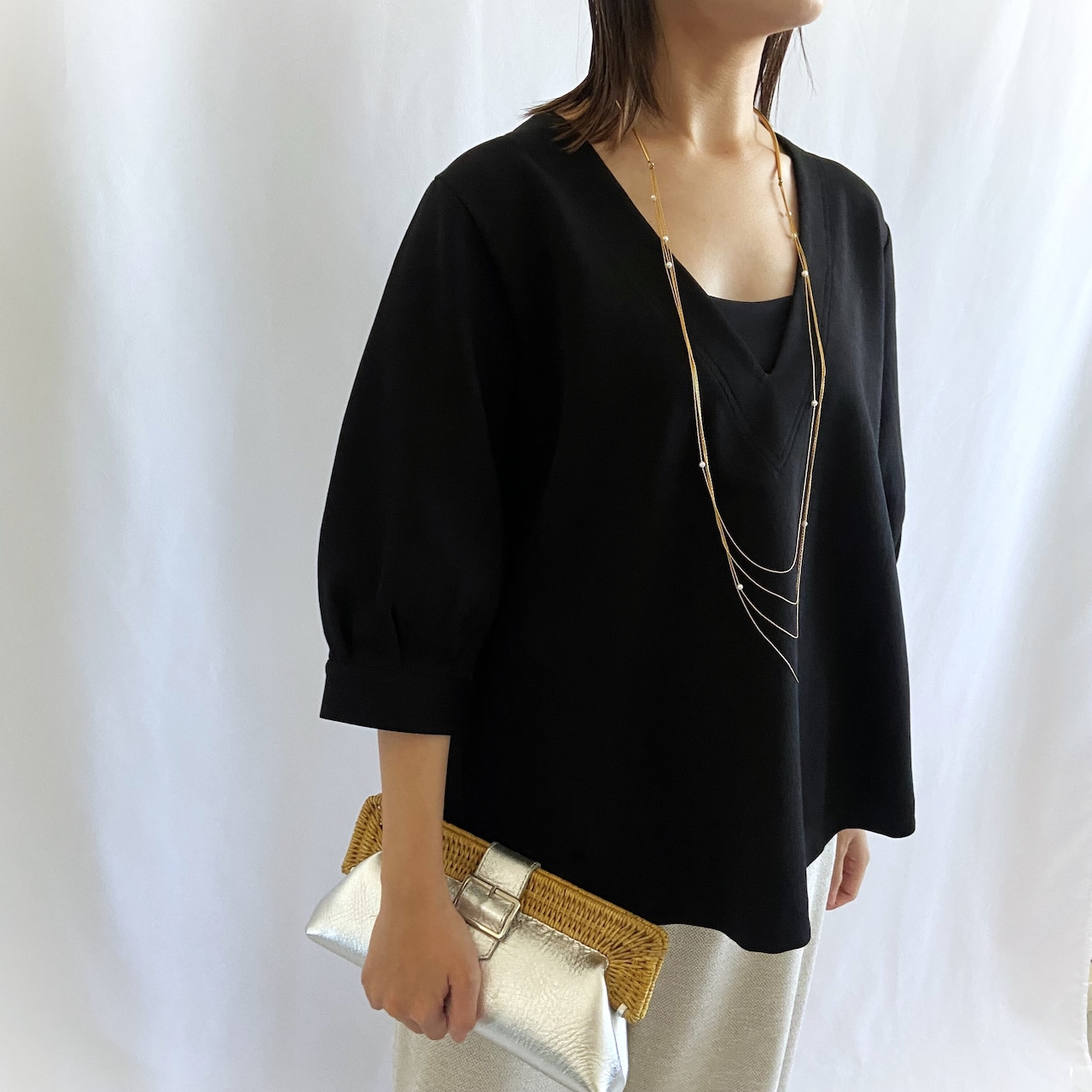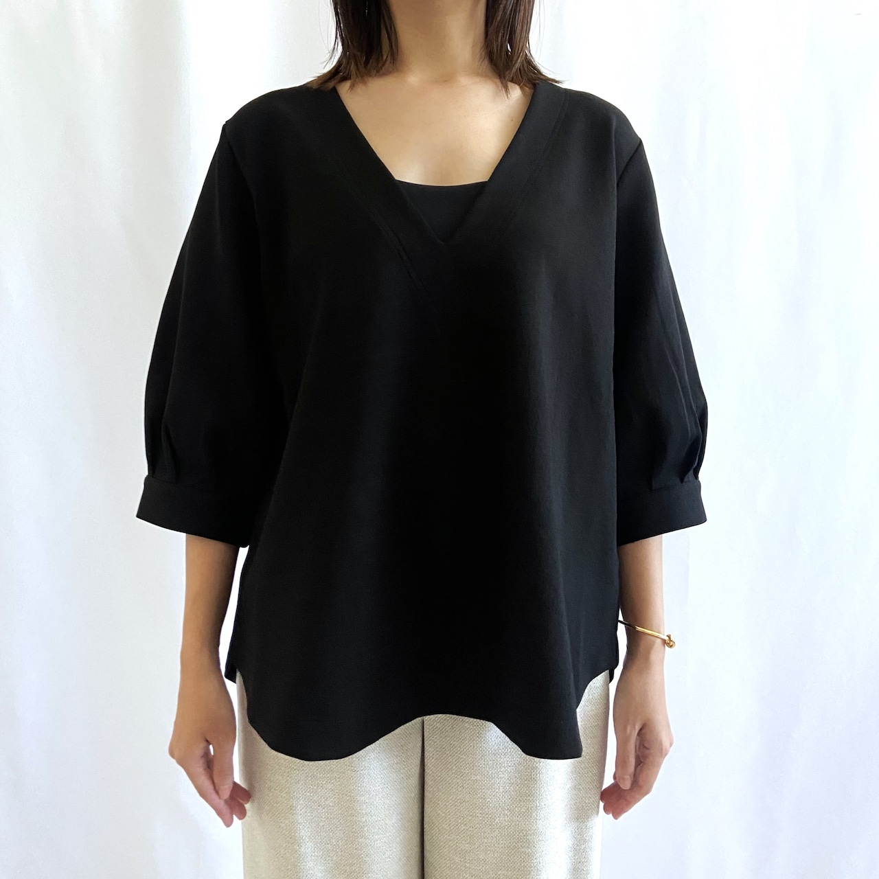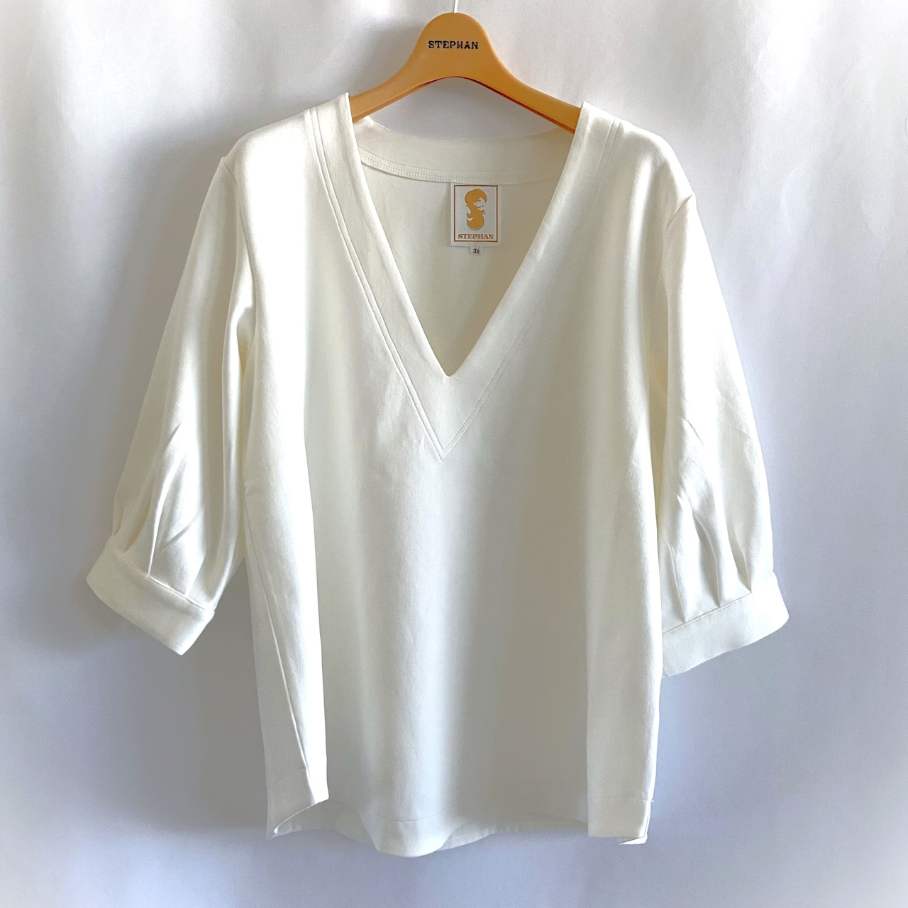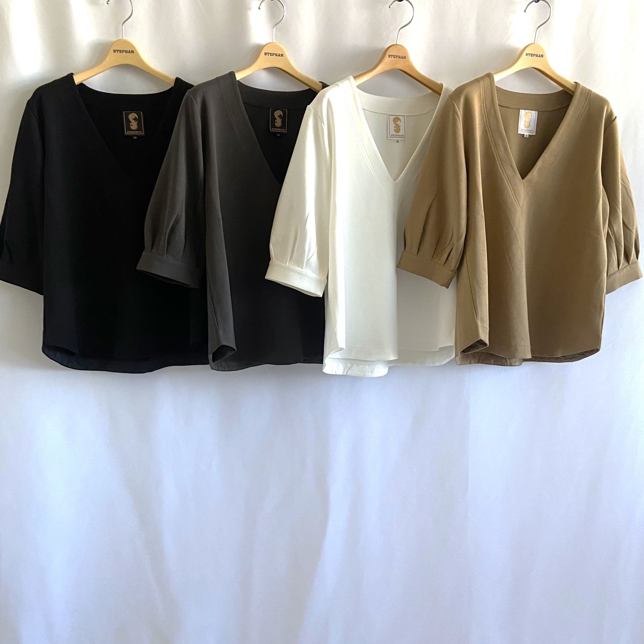 Vネック 七分袖パフスリーブカットソー 41233-20201-2303JS《ステファン》