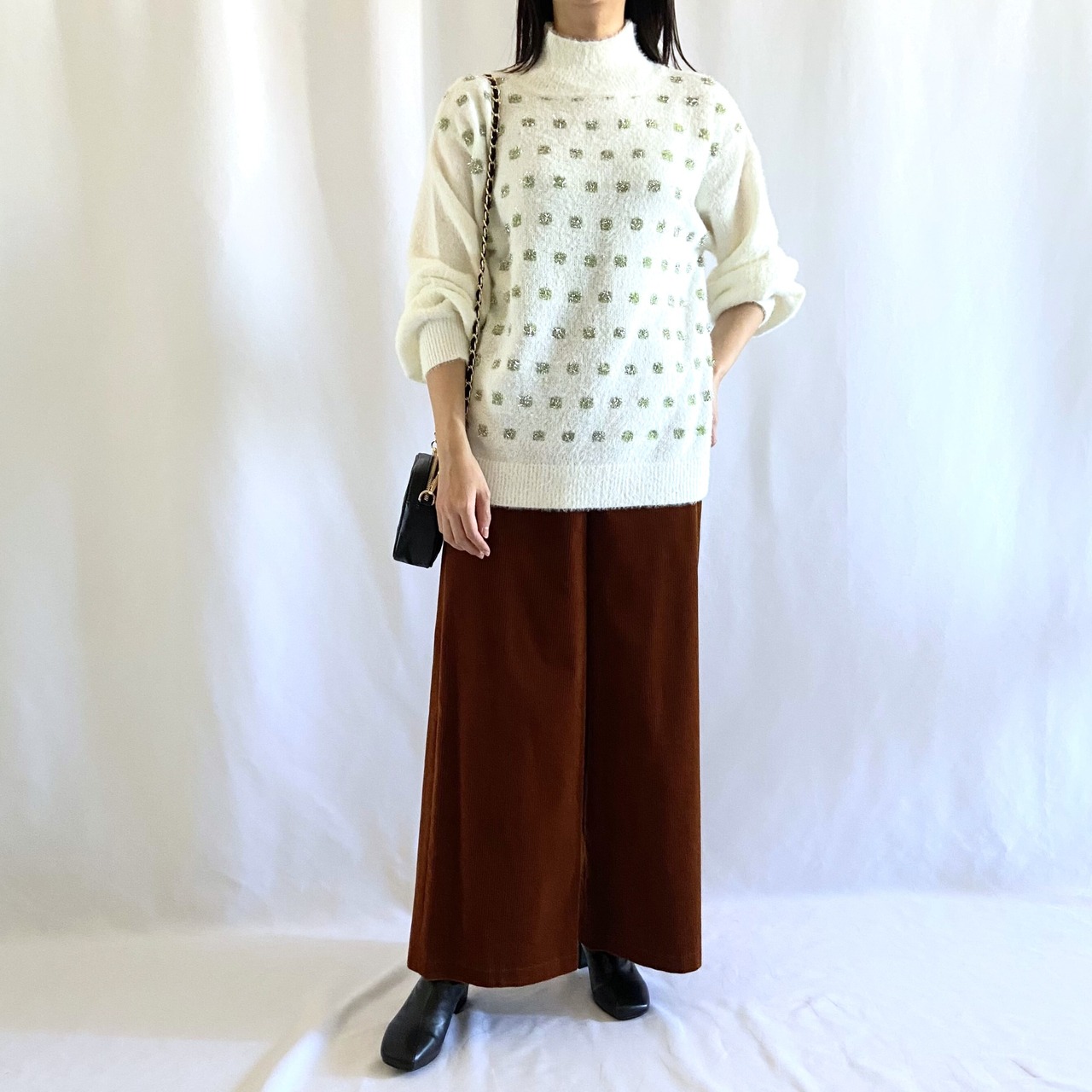 フロントに施した立体感のあるドットがポイントのハイネックニット。