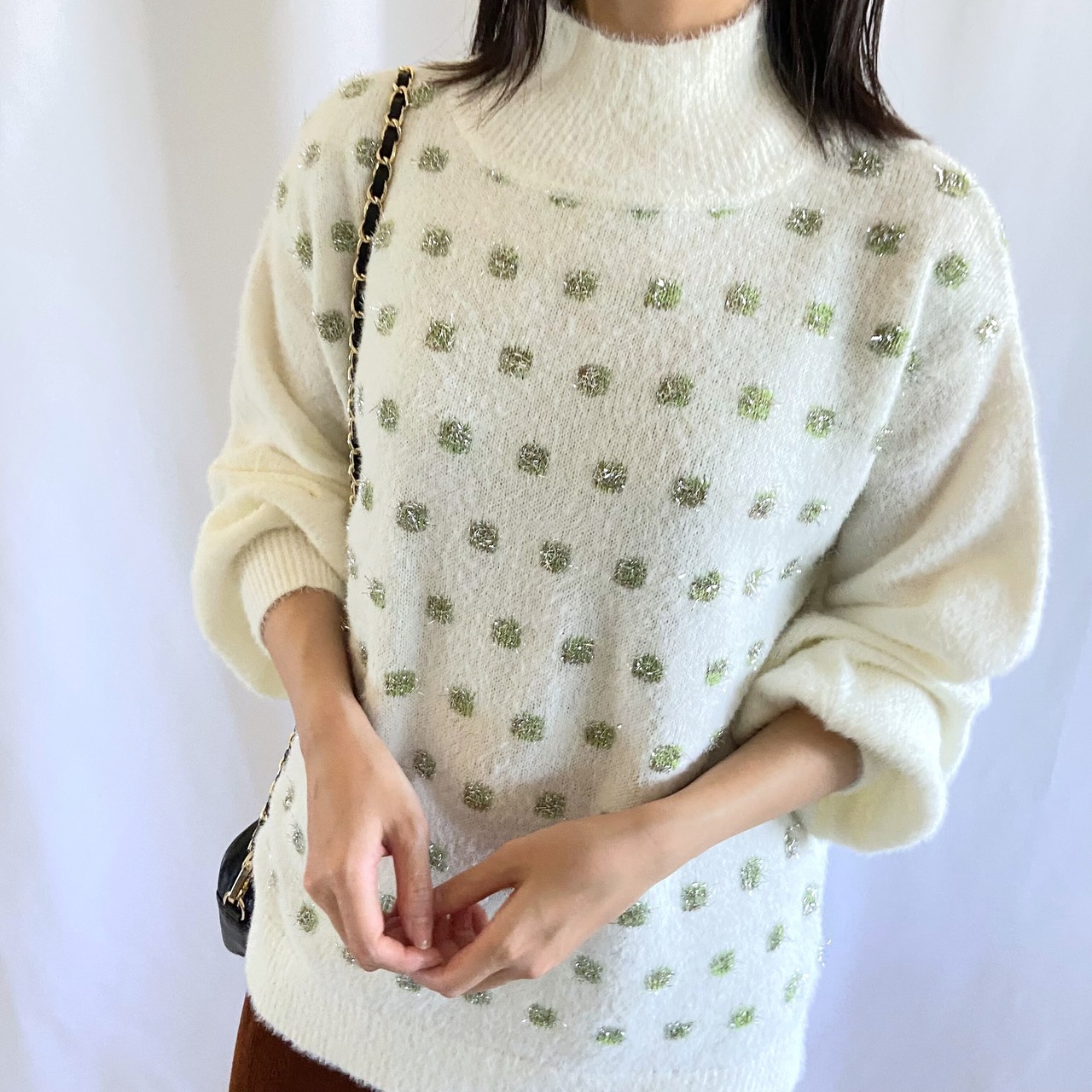 ハイネックフィルムラメドットニット 41233-21101-2303JS《ステファン》