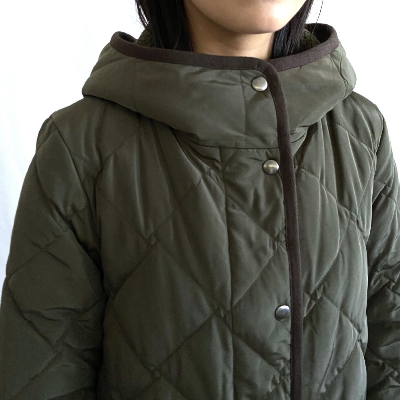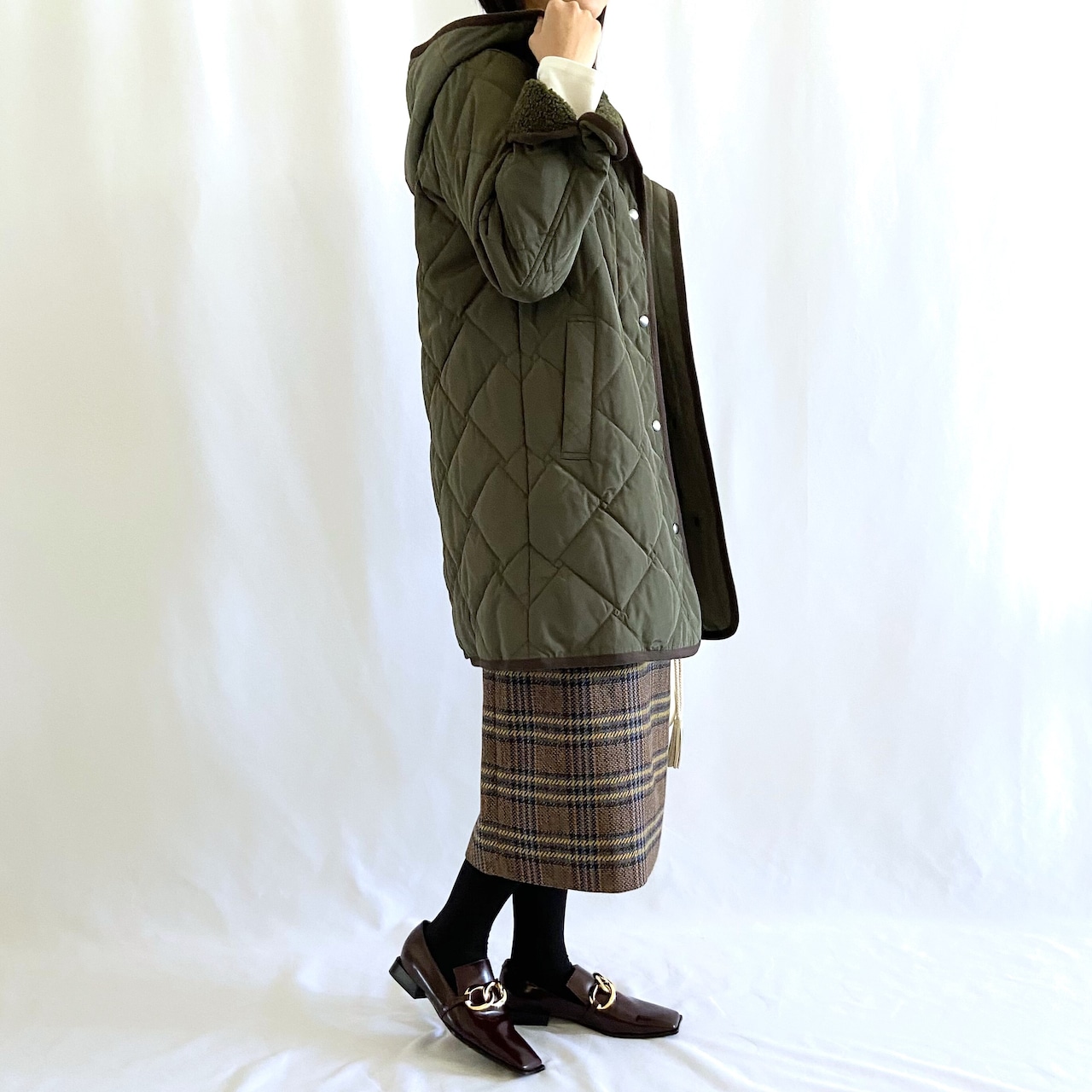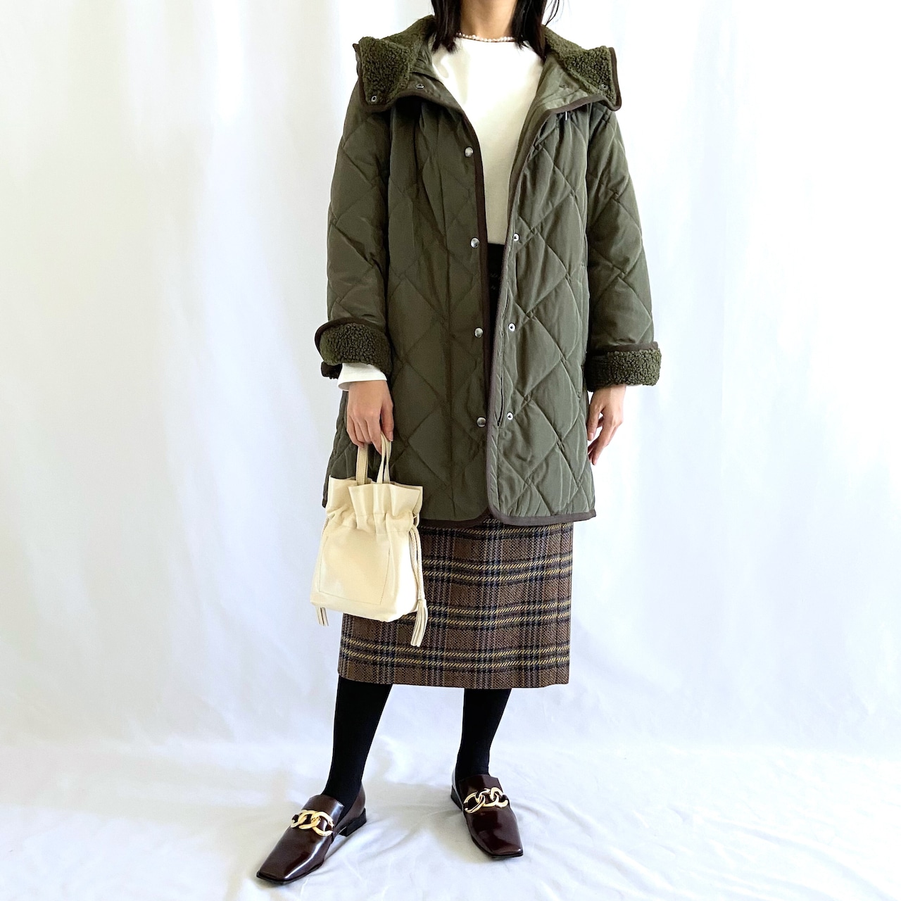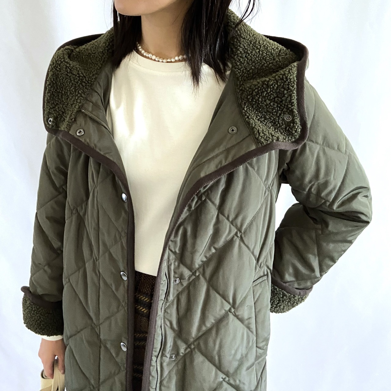キルティングとボアの組み合わせがポイントになったフーディーコート。