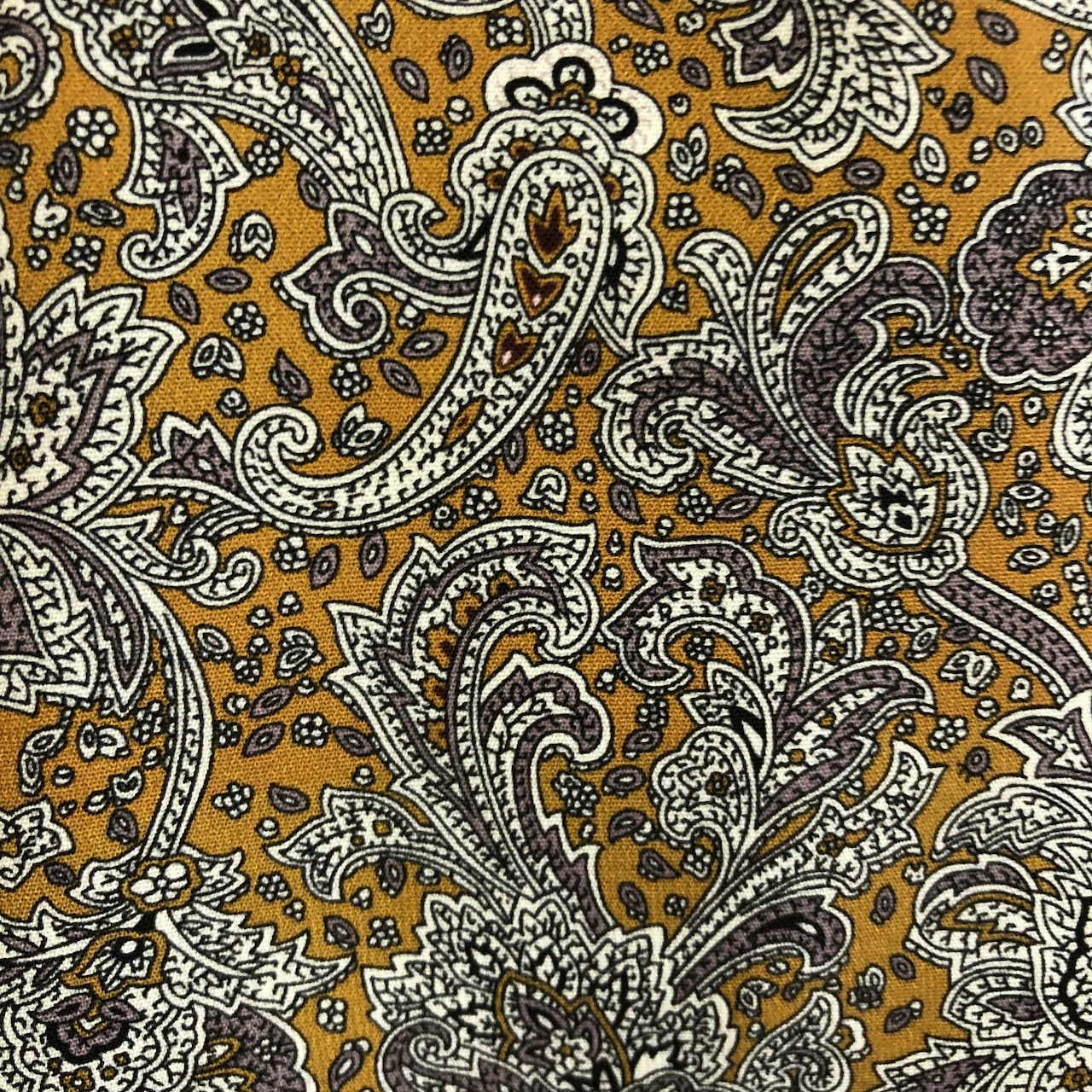 落ち着いたトーンのペイズリー柄なのでボトムの色を選びません。