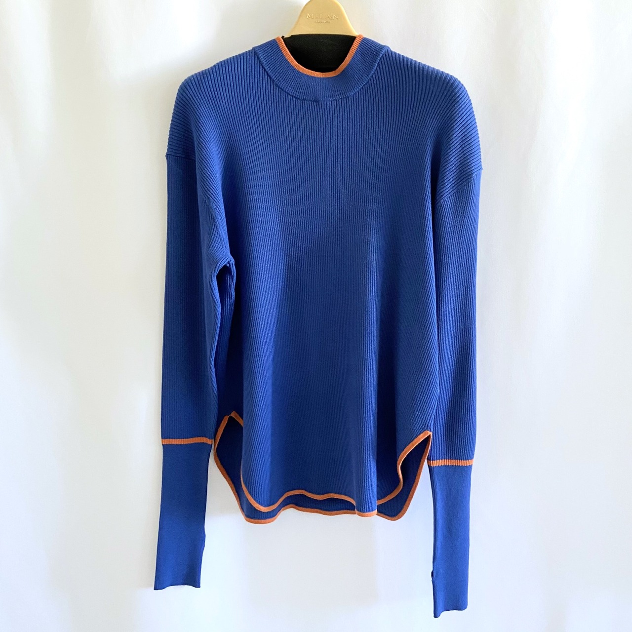 親指を通せるサムホール付きでトレンド感のあるニット。