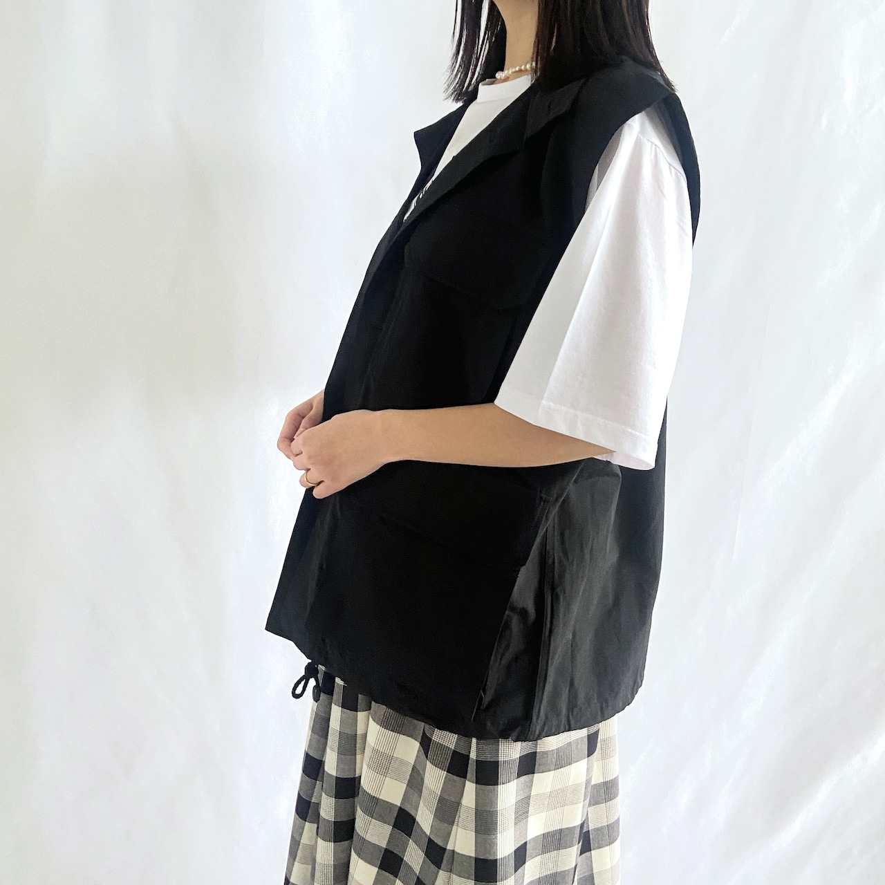 レイヤードのしやすいオーバーサイズのミリタリーベスト。