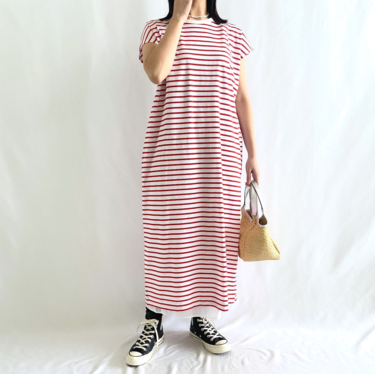 着用スタッフ:160cm 着用カラー:ホワイト×レッド