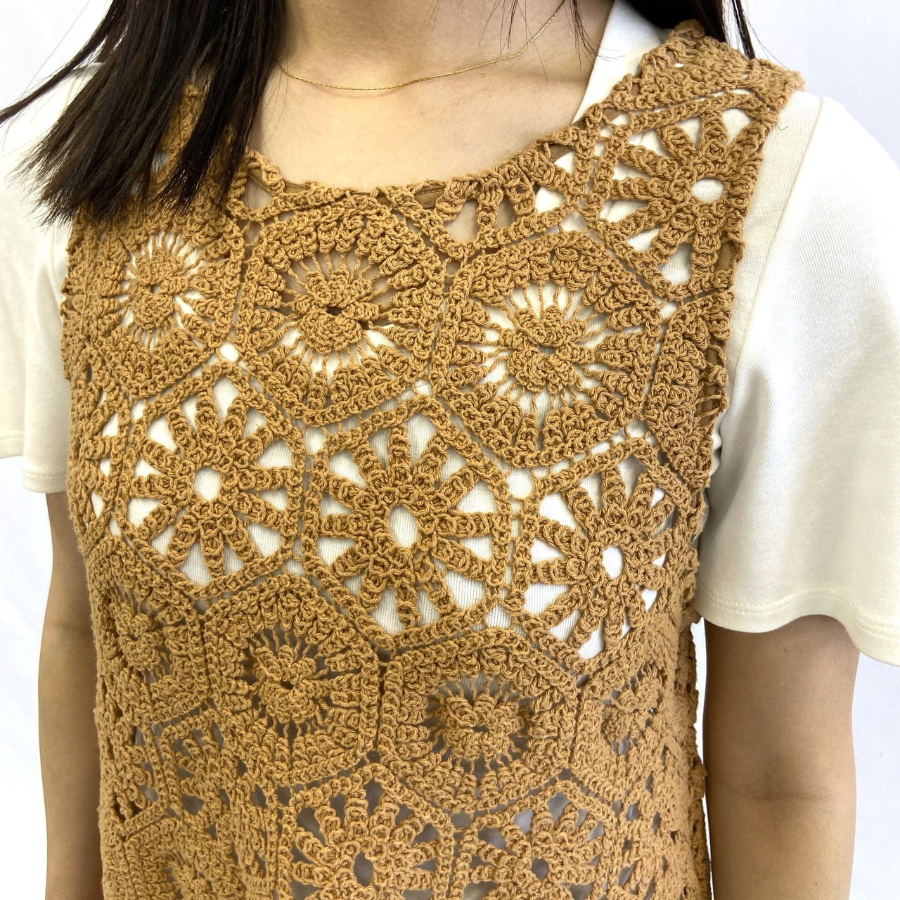 かぎ針編みで温かみを感じるデザインのサマーニット。