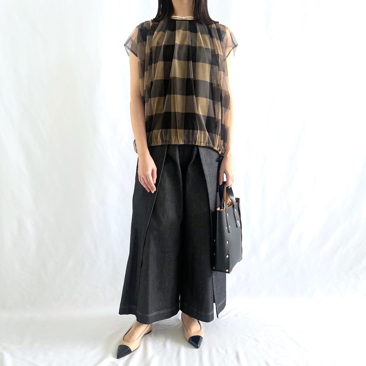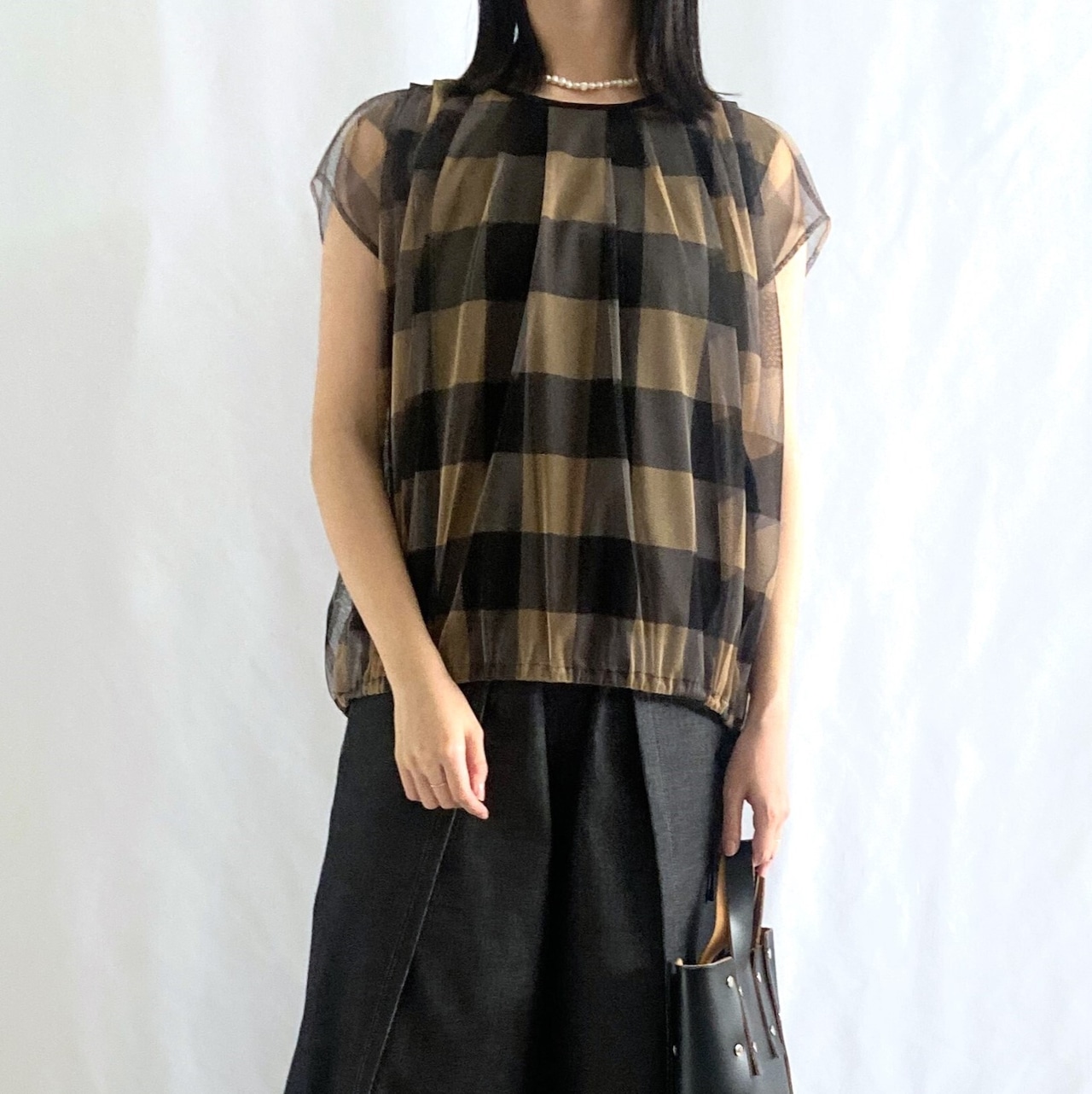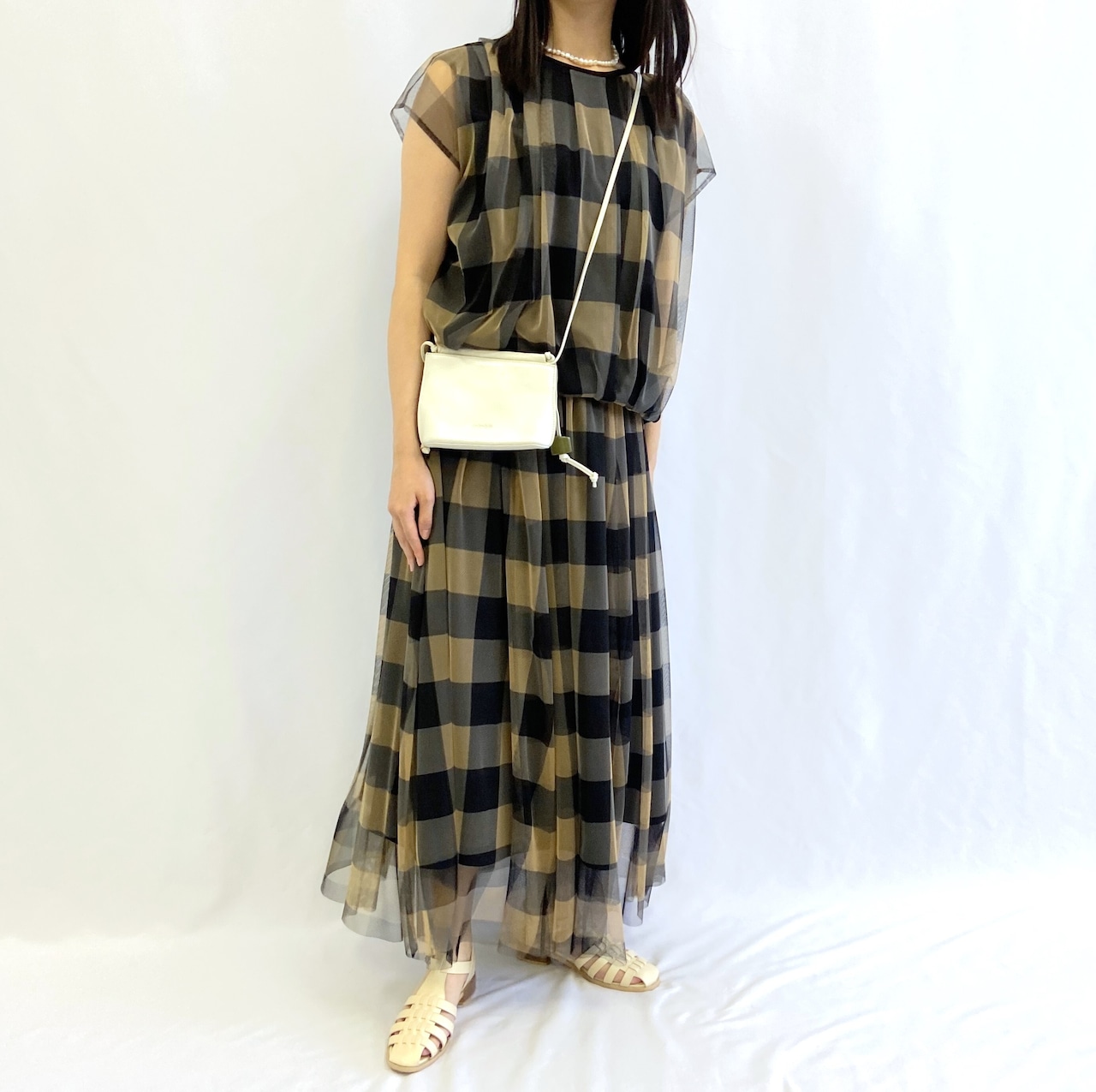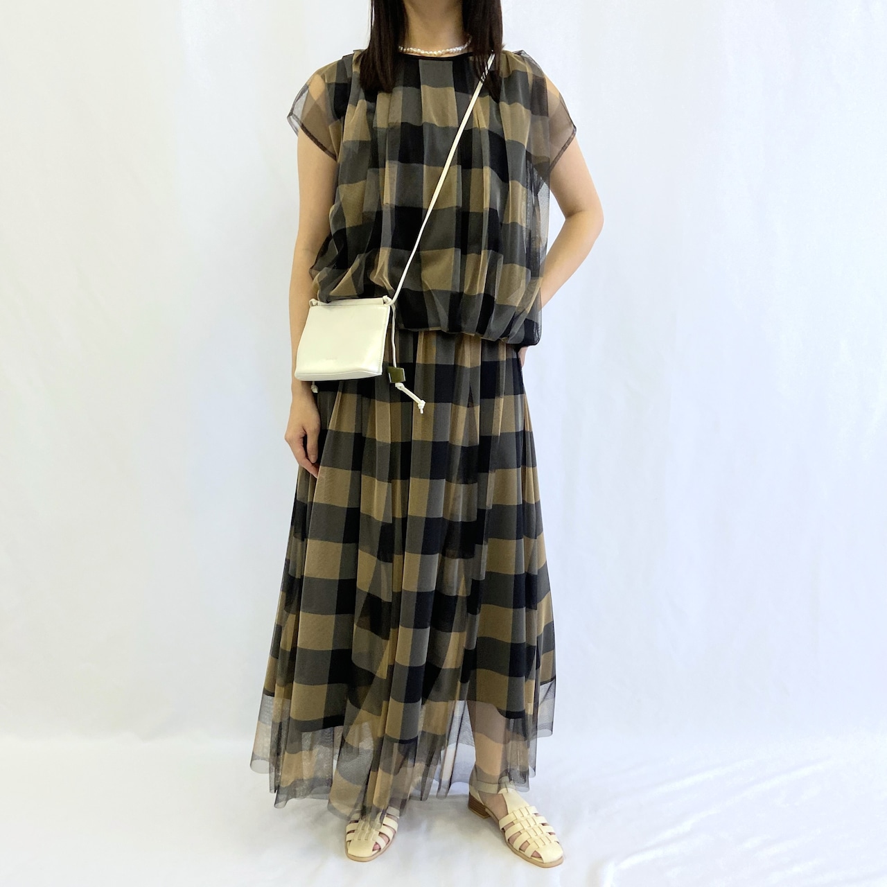 ふんわりとしたデザインと大きめのギンガムチェックが目を引く1枚で、着映えするデザインです。