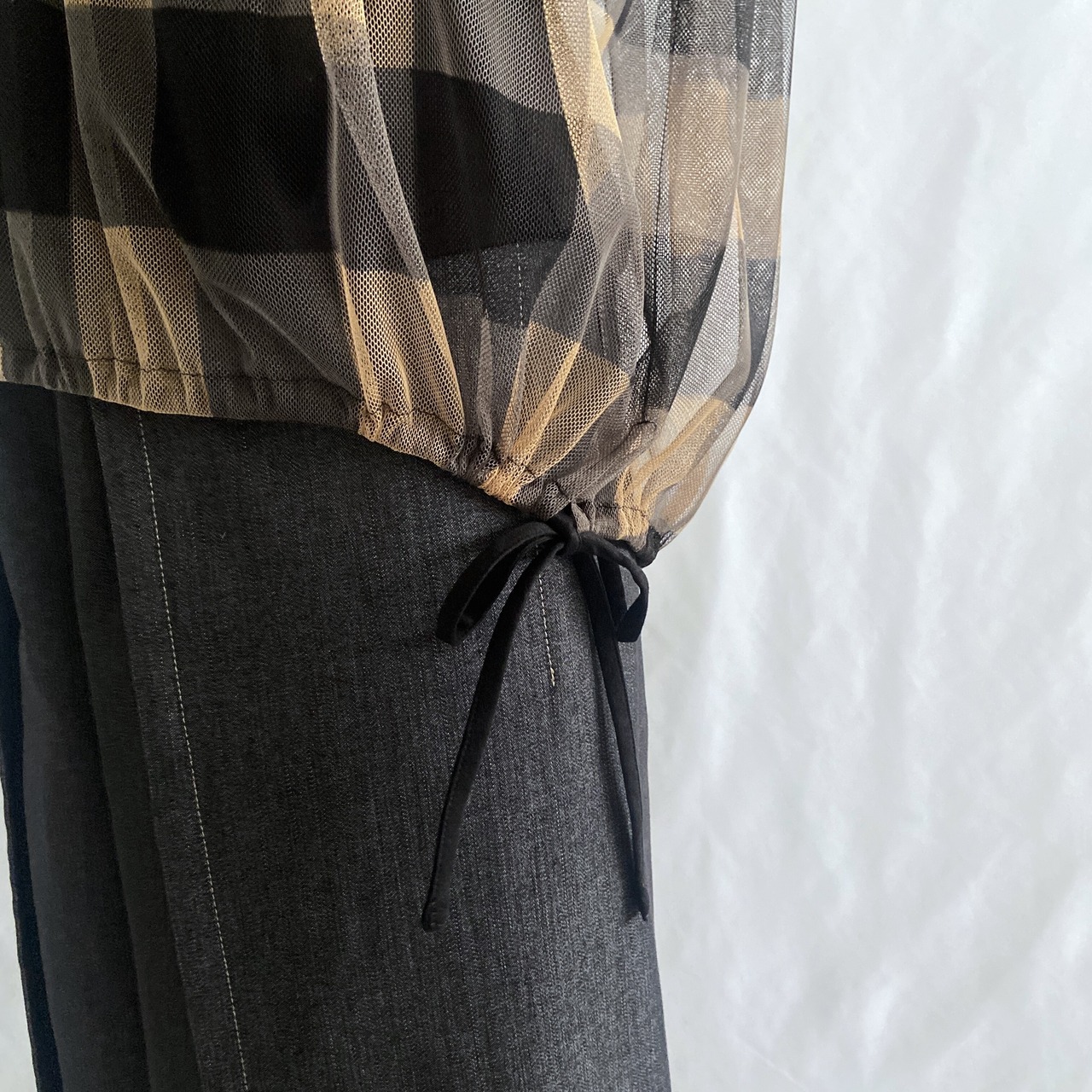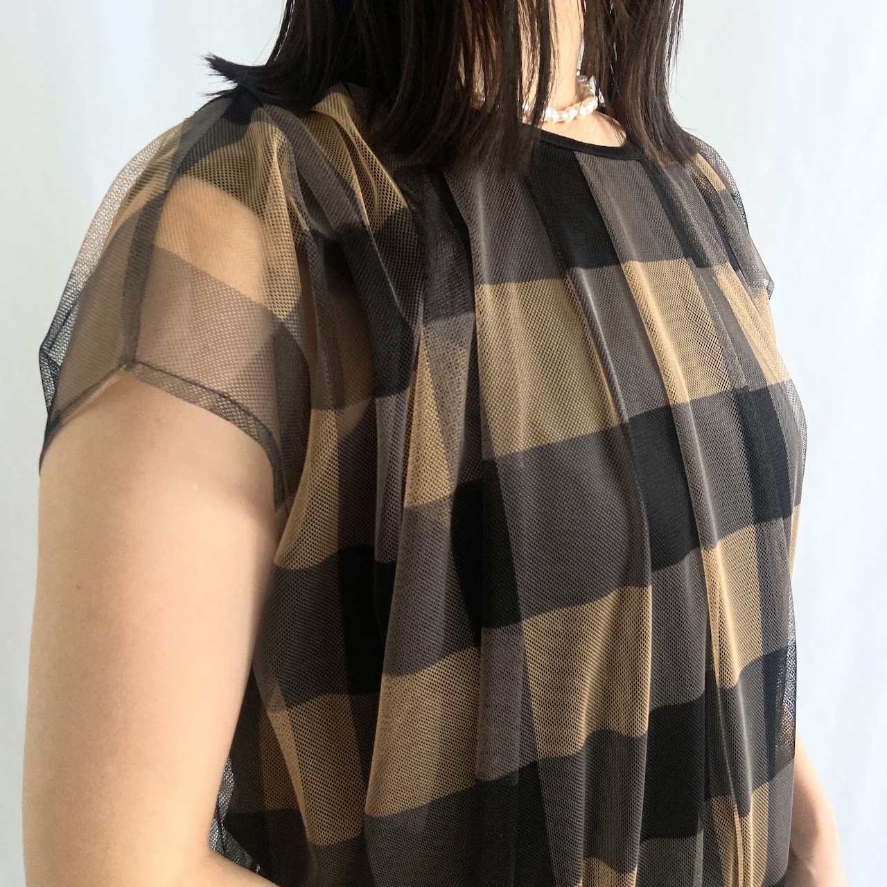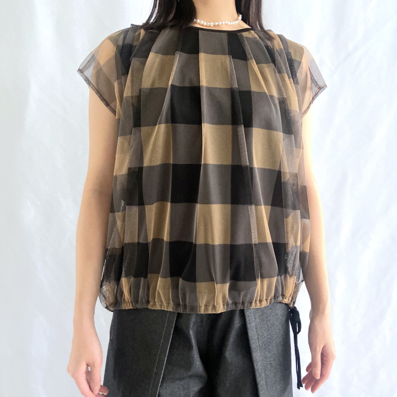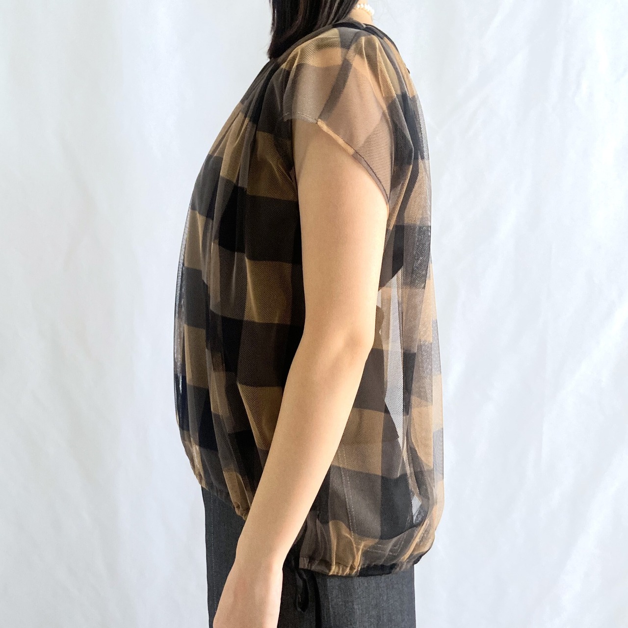 ギンガムチェック チュールブラウス:76439-34269-2401《ジョルネア》