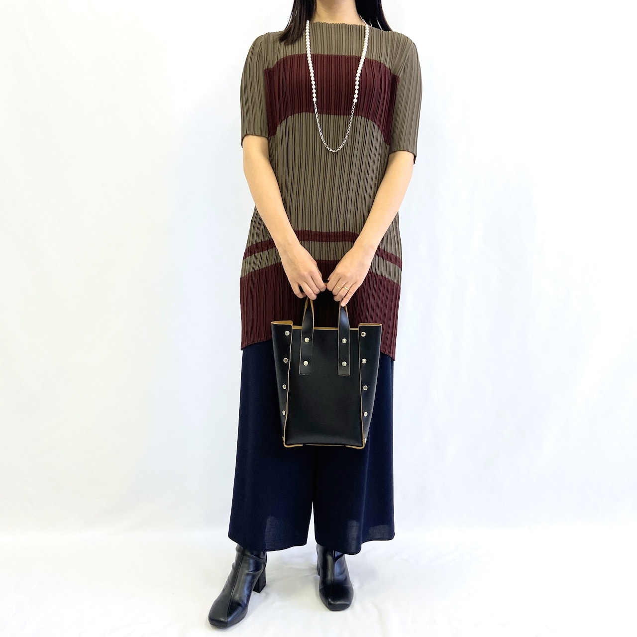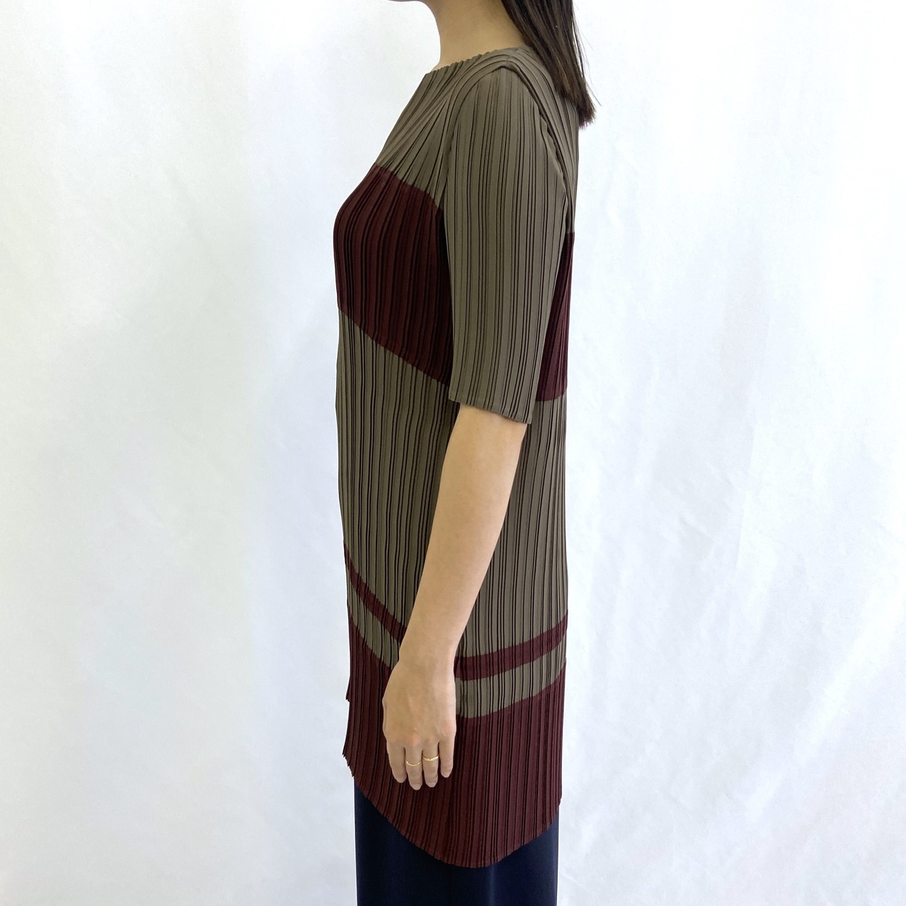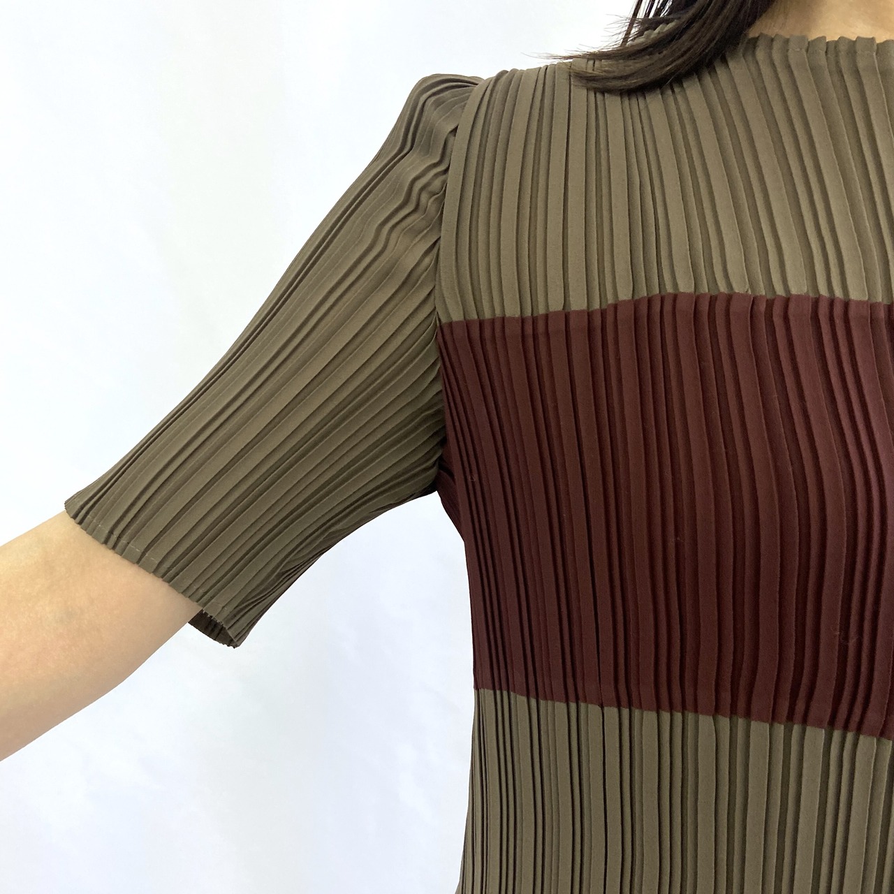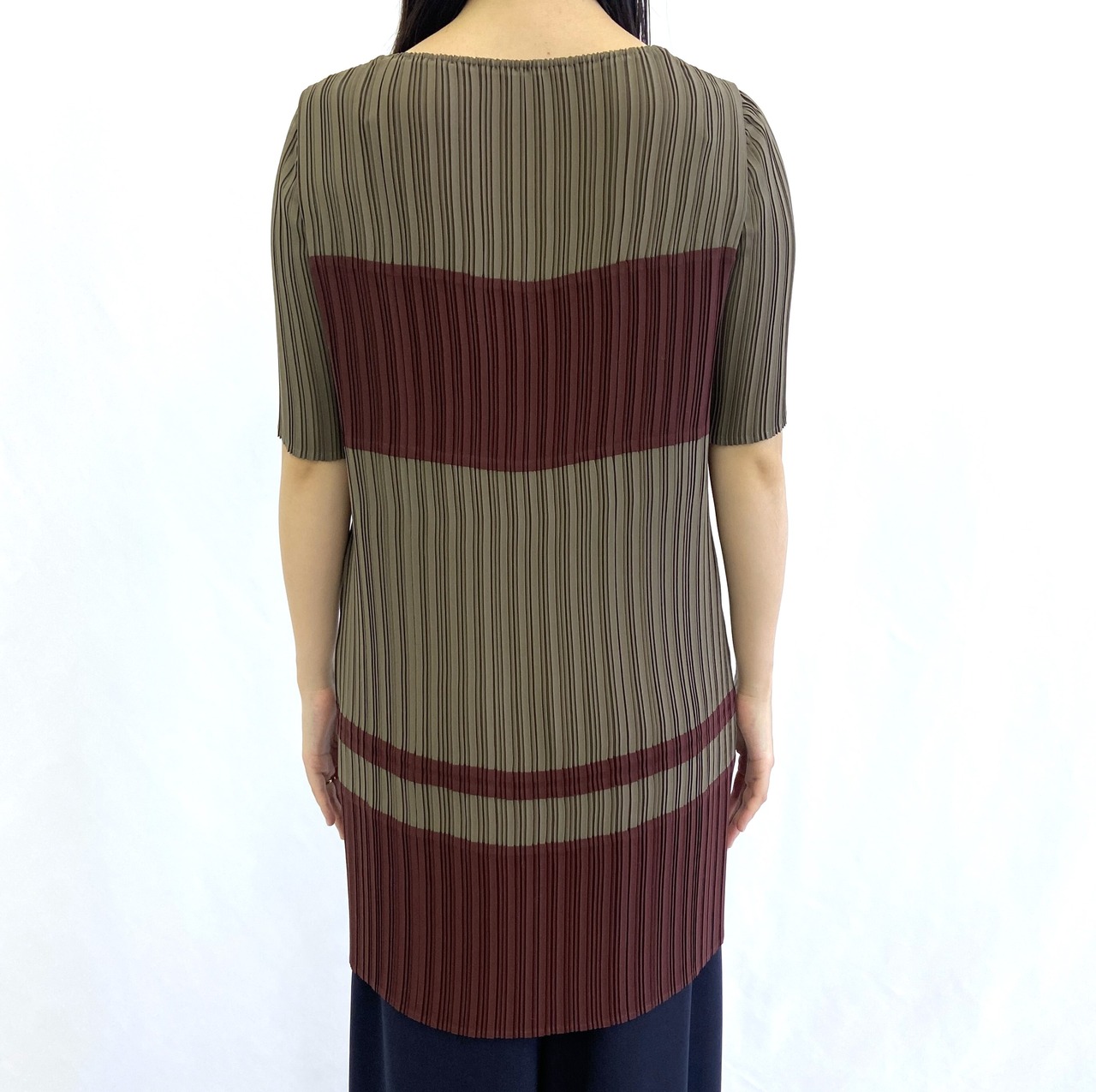 【特別提供価格】プリーツ バイカラー半袖チュニック 87402-06247《ジョルネア⦆