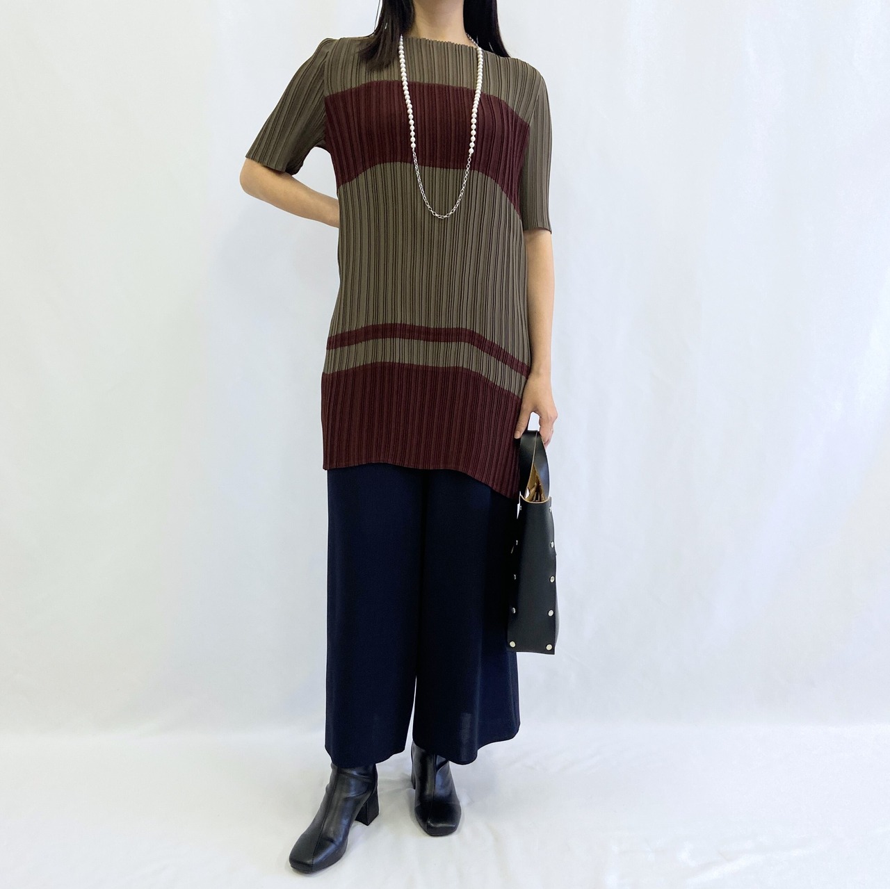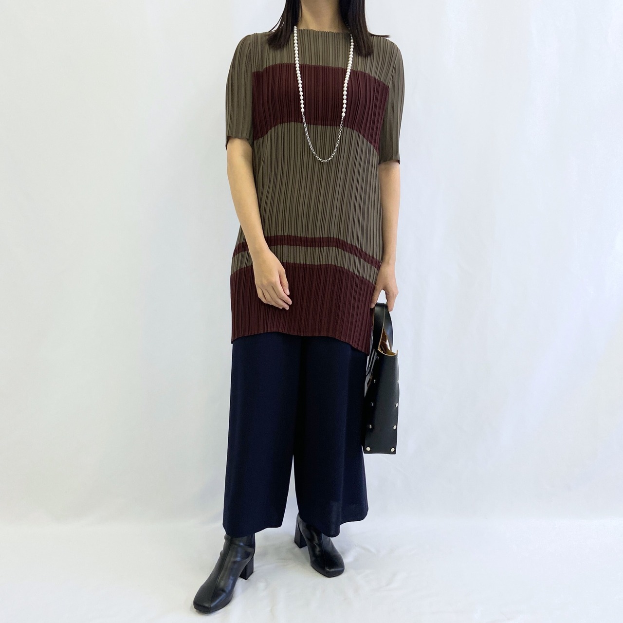伸縮性のあるプリーツ素材を使用したチュニック。