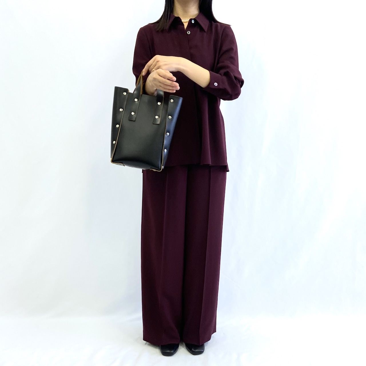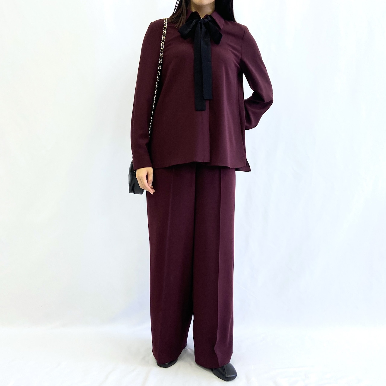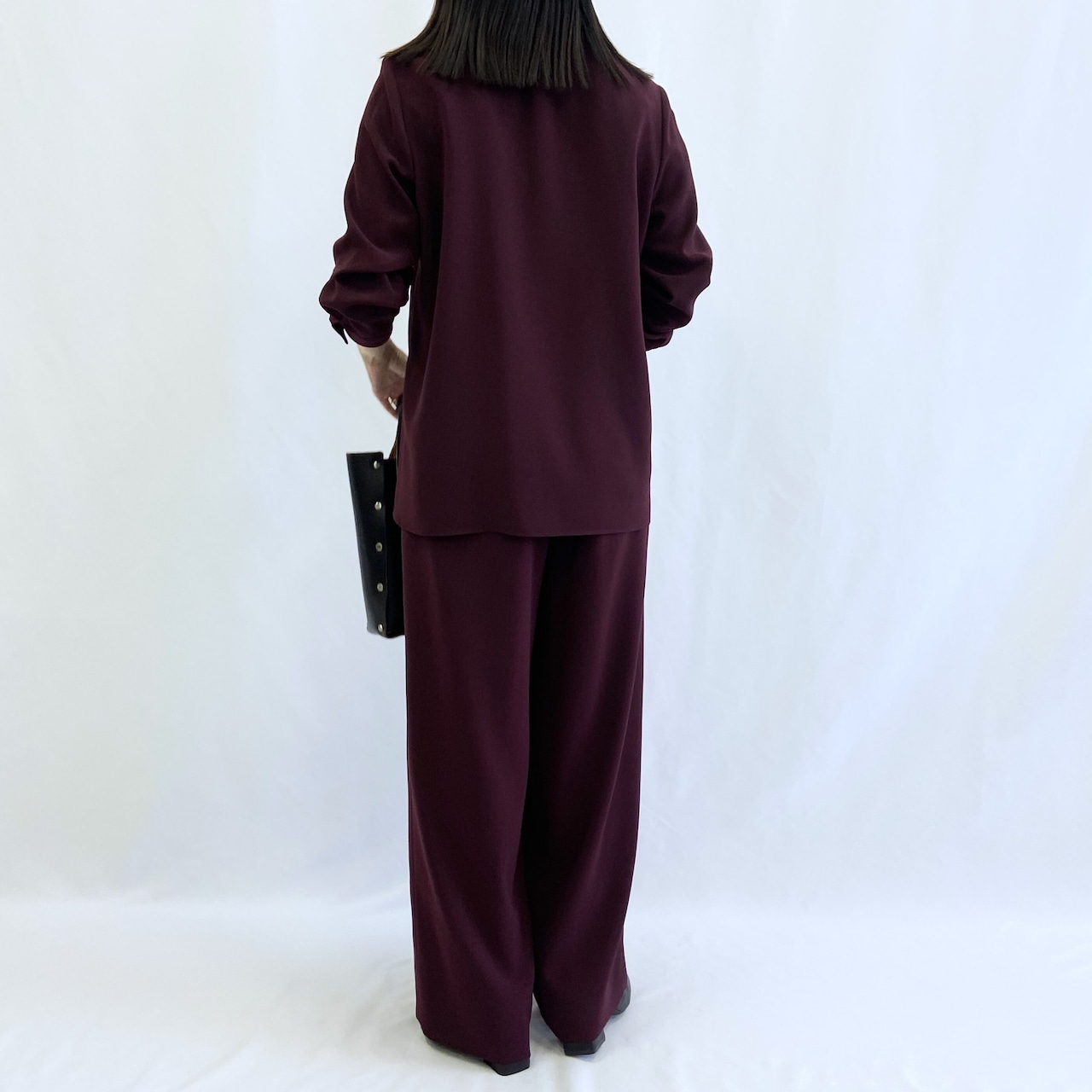 同じシリーズのワイドパンツと合わせて、セットアップのコーディネートがおすすめ。