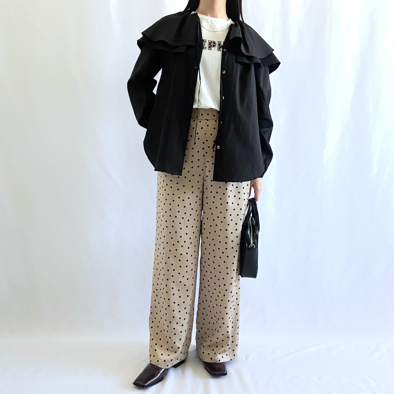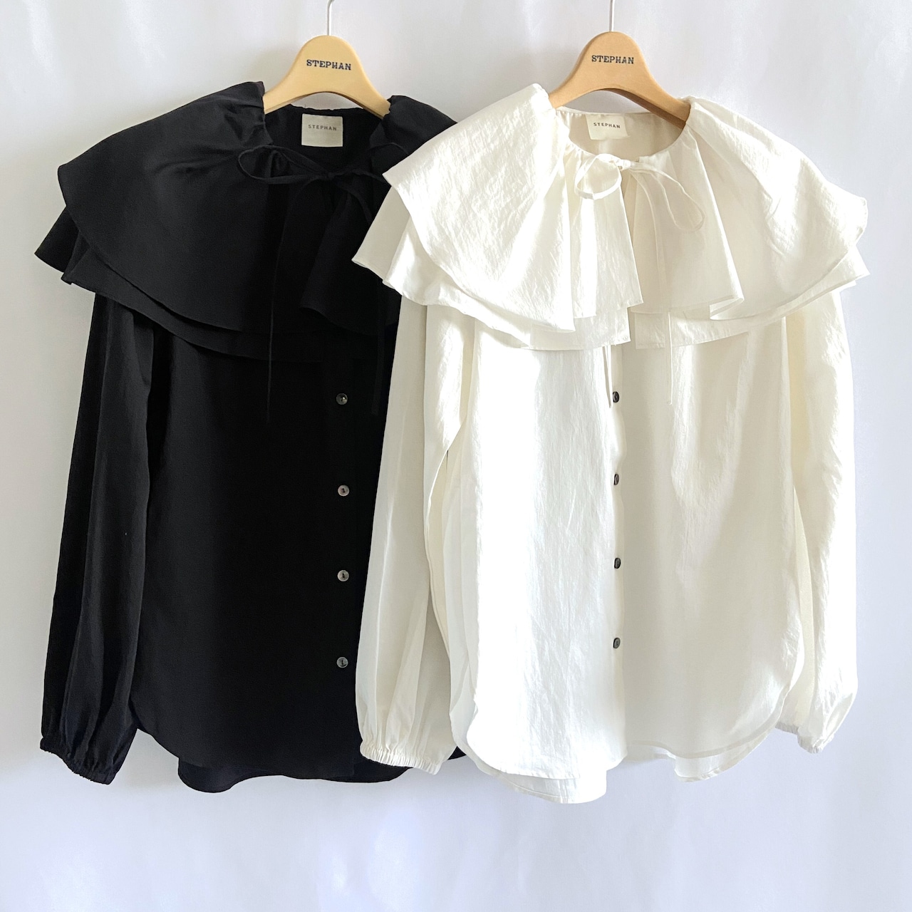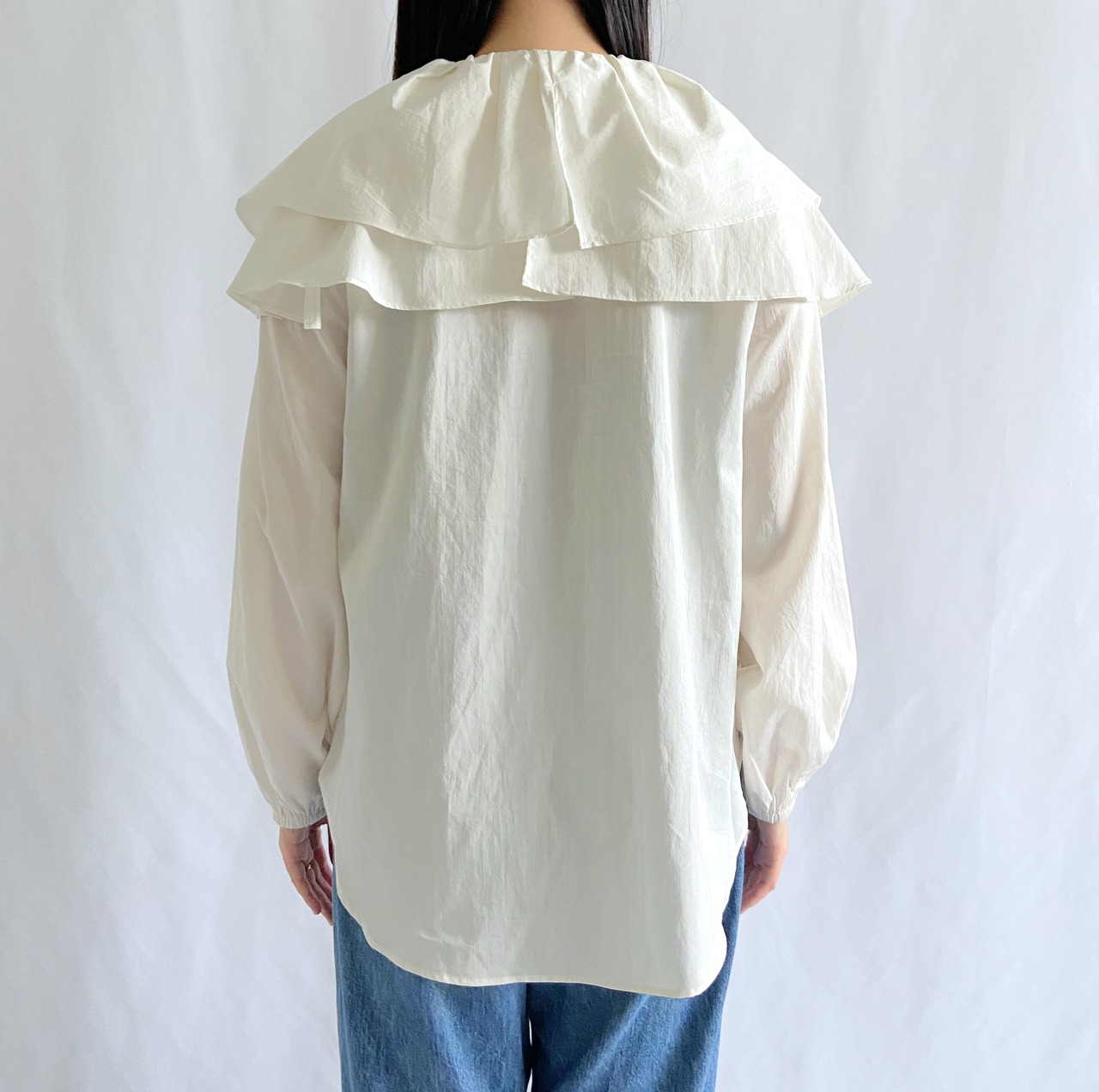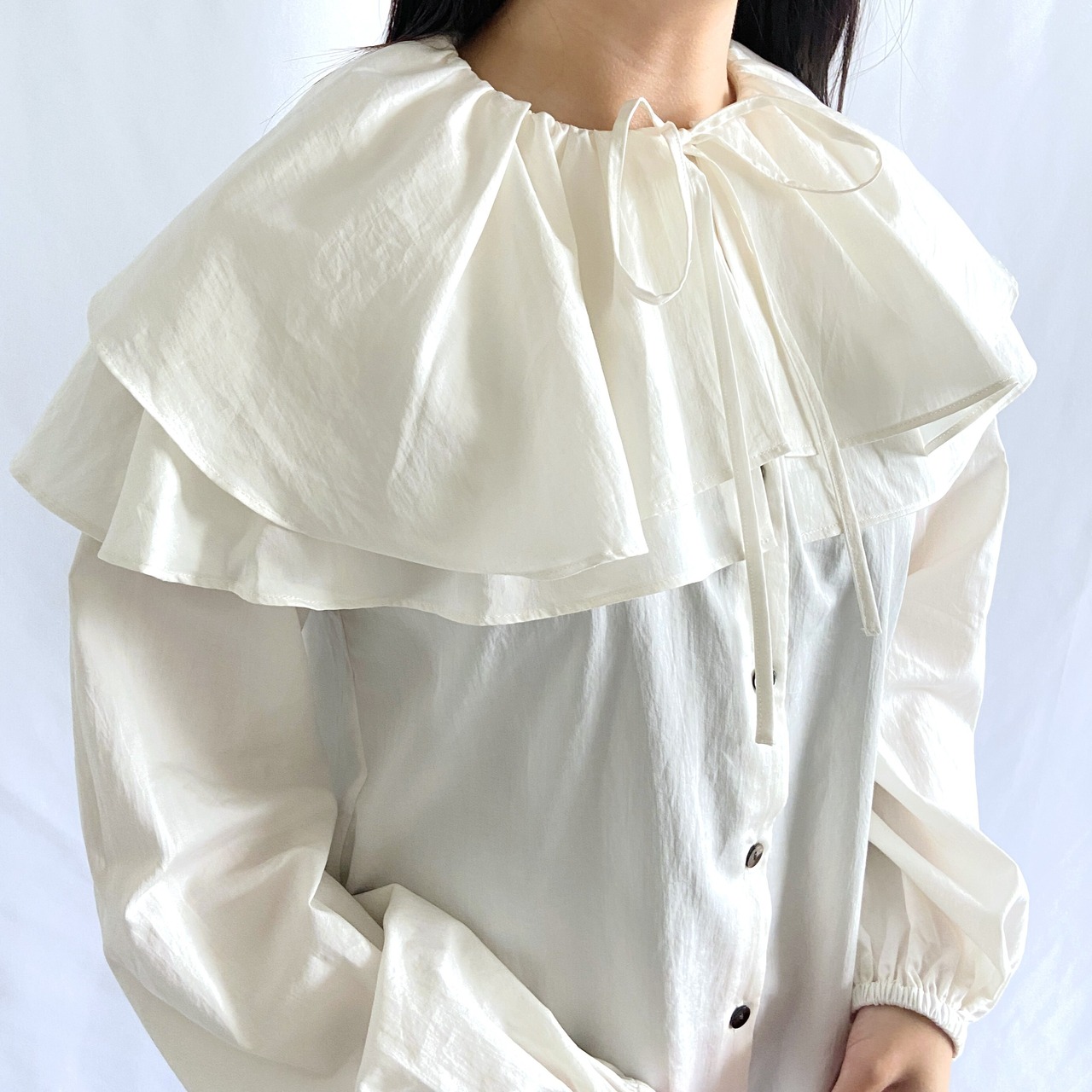 ボリューム感たっぷりのフレアケープがポイントになったブラウス。