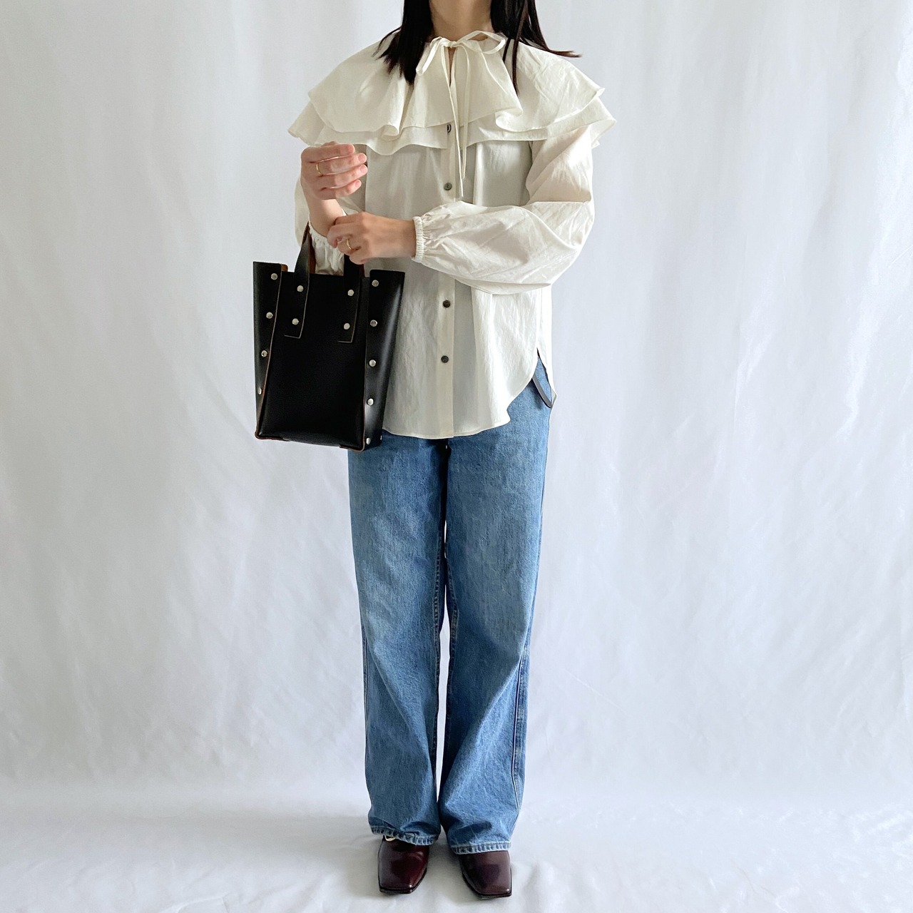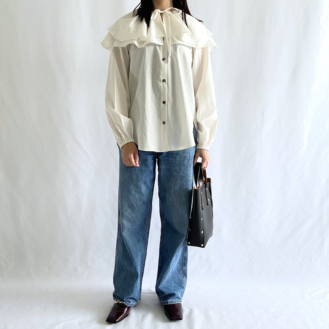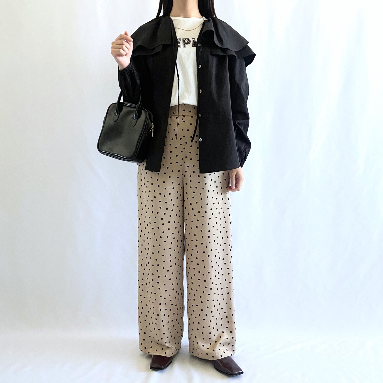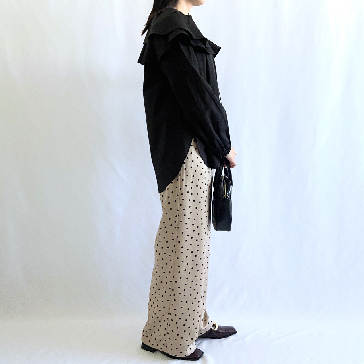 ボリューム感たっぷりのフレアケープがポイントになったブラウス。