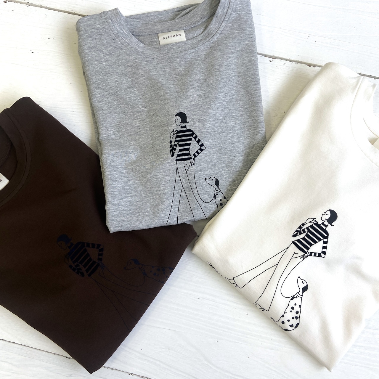 ダルメシアンと散歩している女の子が目を引くカットソー。
