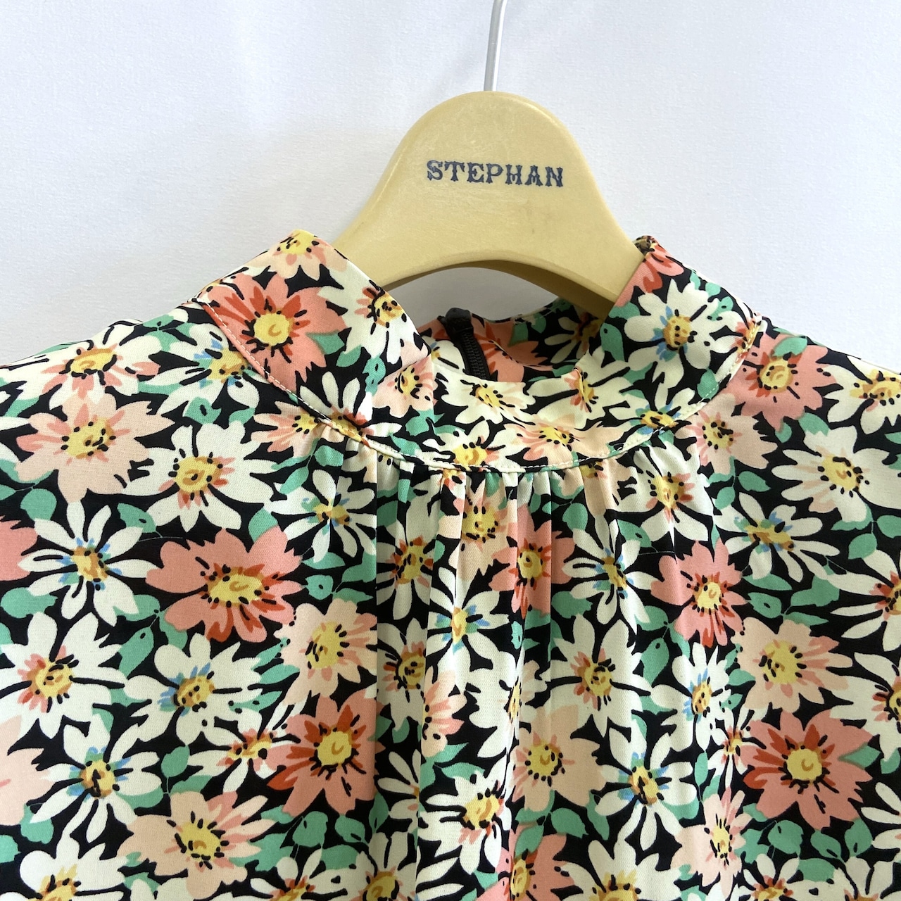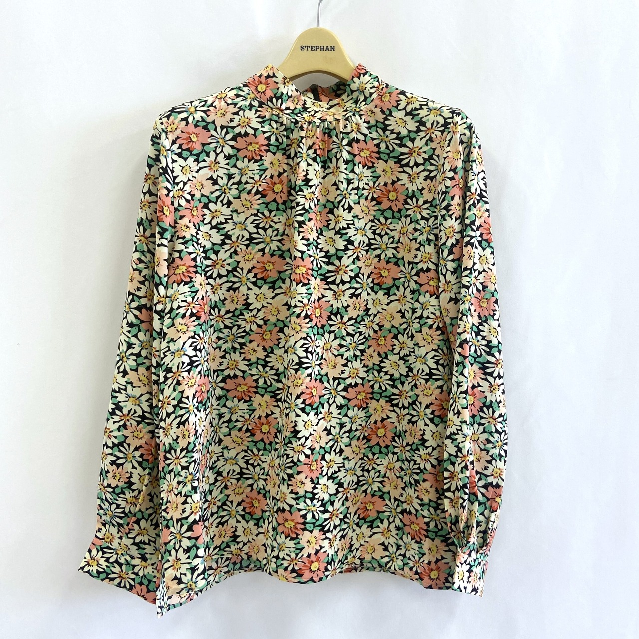 レトロフラワープリント ハイネックブラウス:41243-30151-2403J《ステファン》