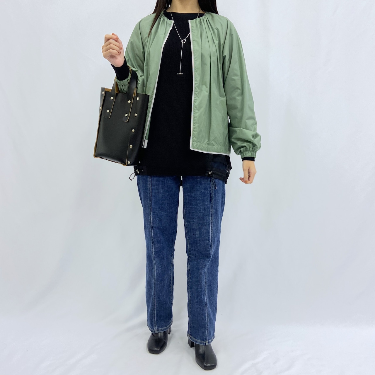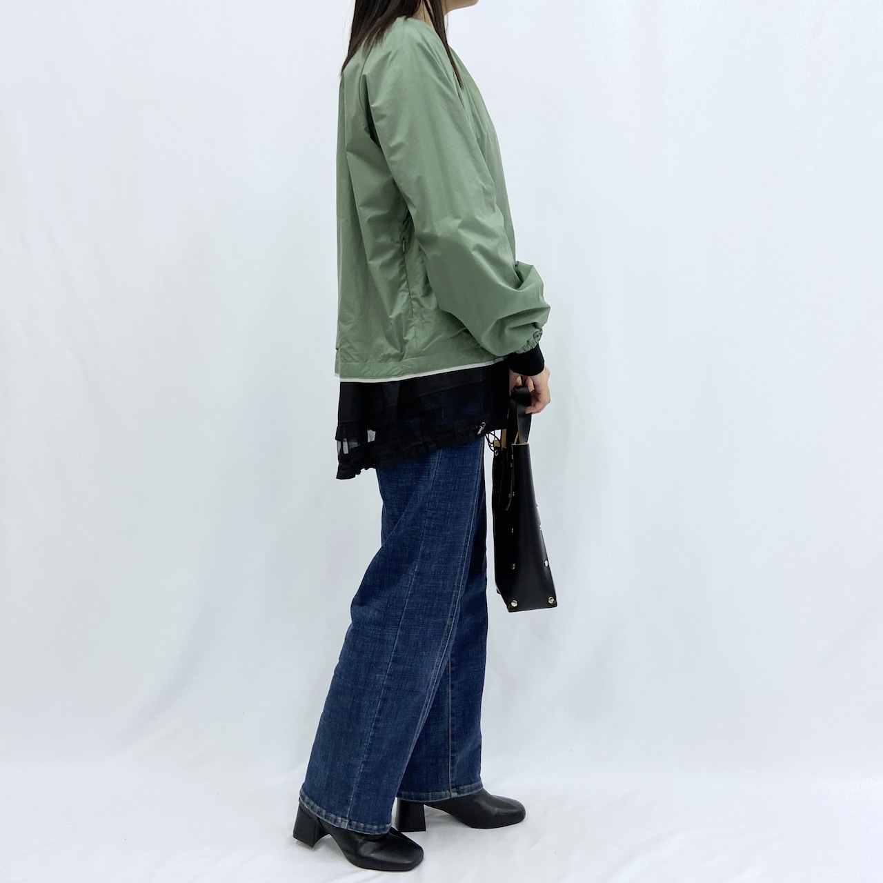 やや短めの丈感なので、幅広いボトムと合わせてお楽しみいただけます。