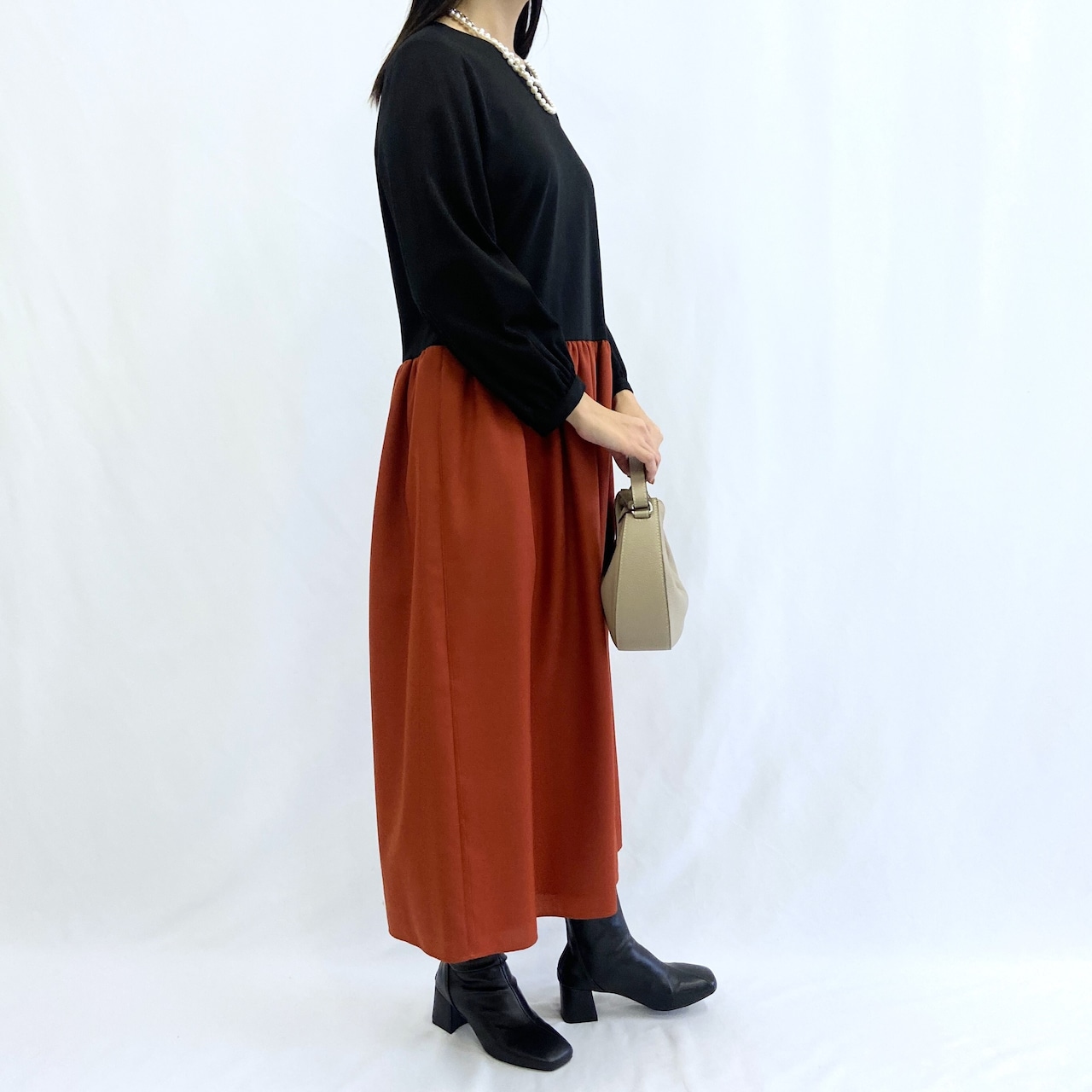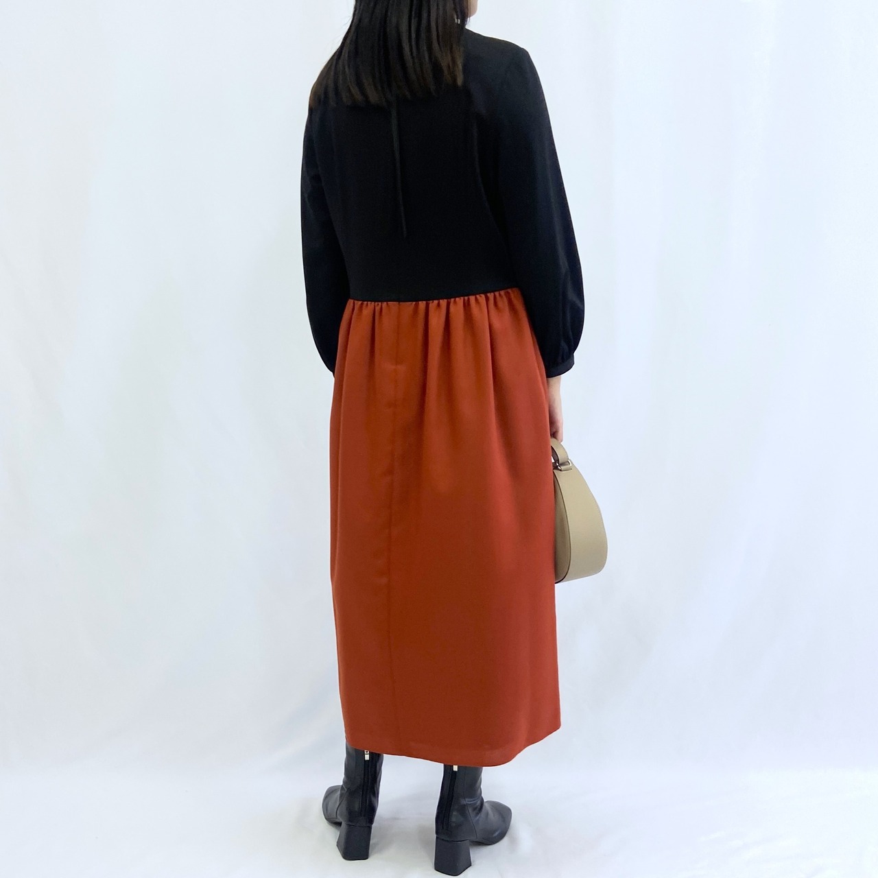 トップスとスカートがドッキングされたコーデいらずのワンピース。