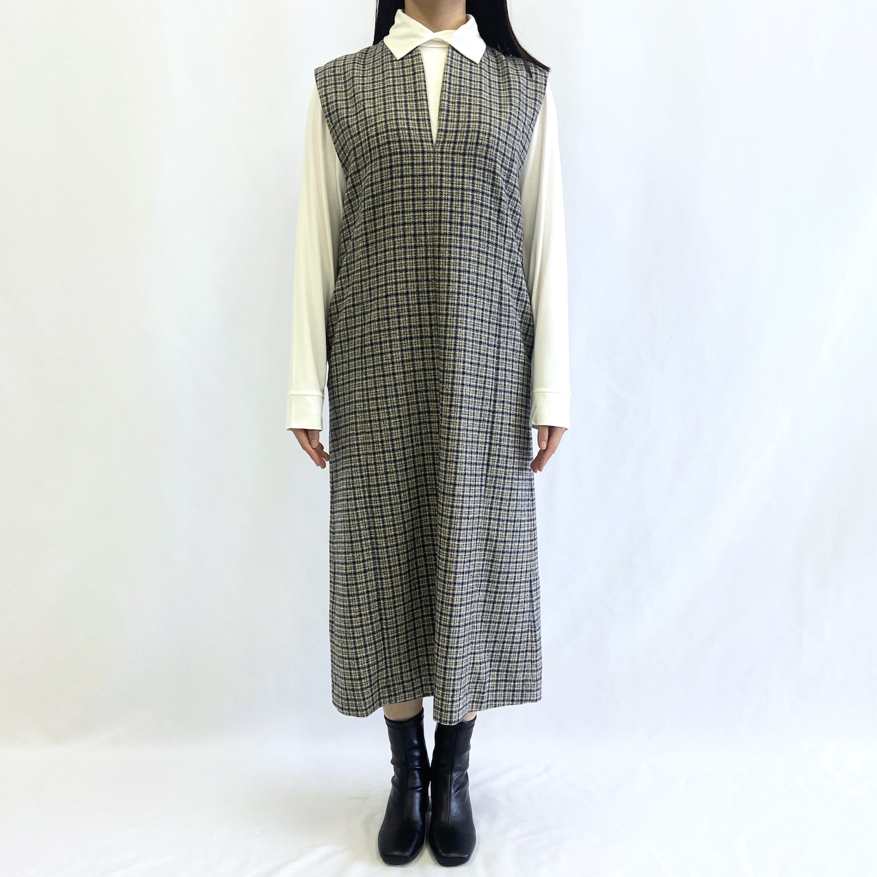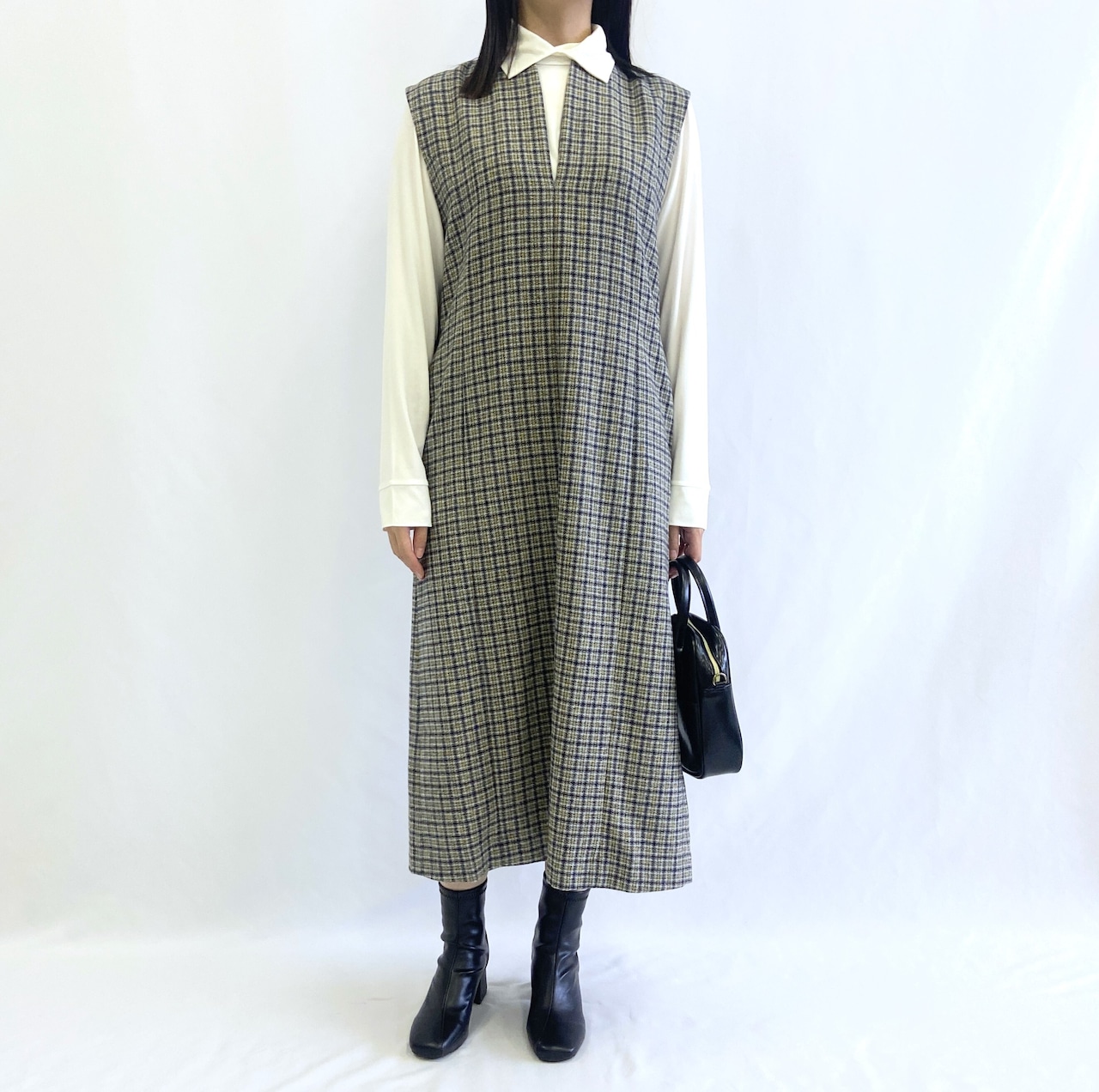 キーネック グレンチェックジャンバースカート:41243-70081-2403J《ステファン》