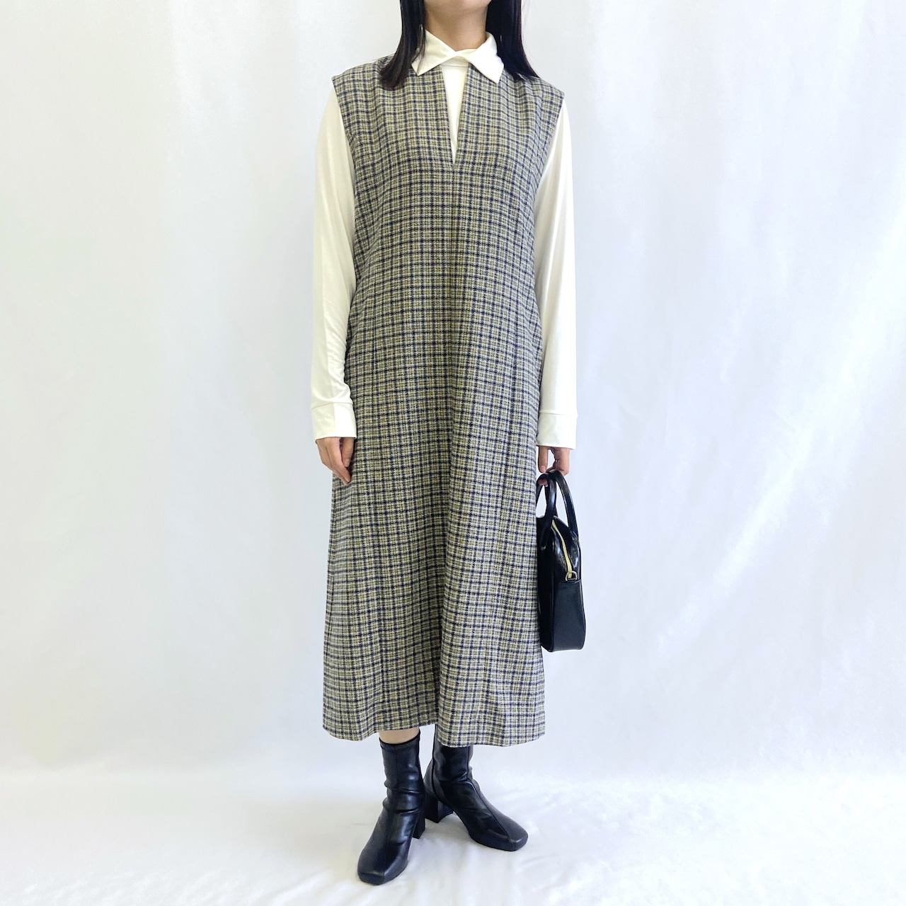 小物やインナーの合わせ次第でキレイめにもカジュアルにも着こなせるワンピースは、シーンを選らばずオンオフ活躍します。