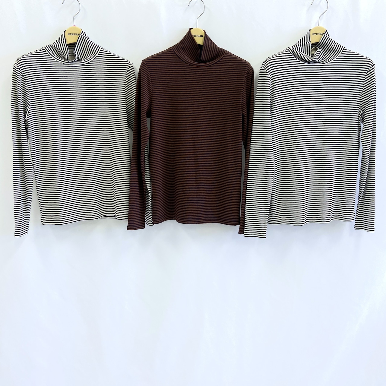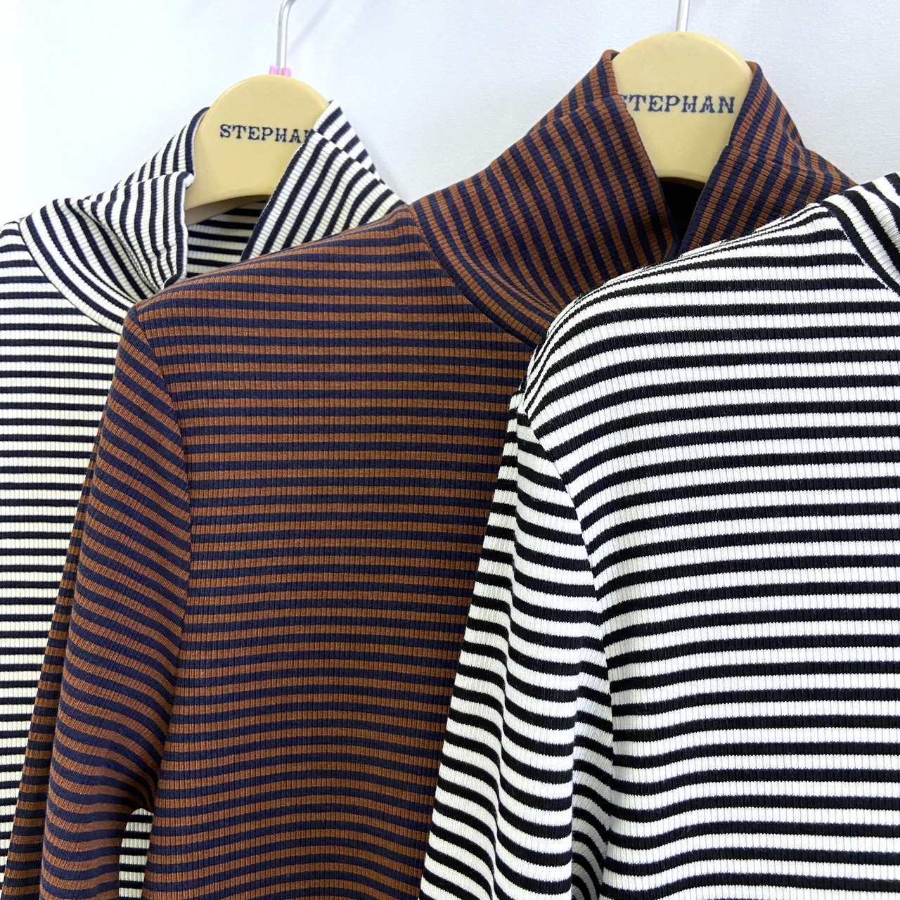 タートルネック ボーダーカットソー:41243-20021-2403J《ステファン》