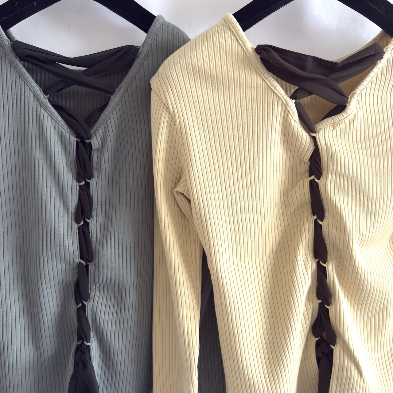 【特別提供価格】バックリボン リブカットソー:85412-02338《ジョルネア⦆