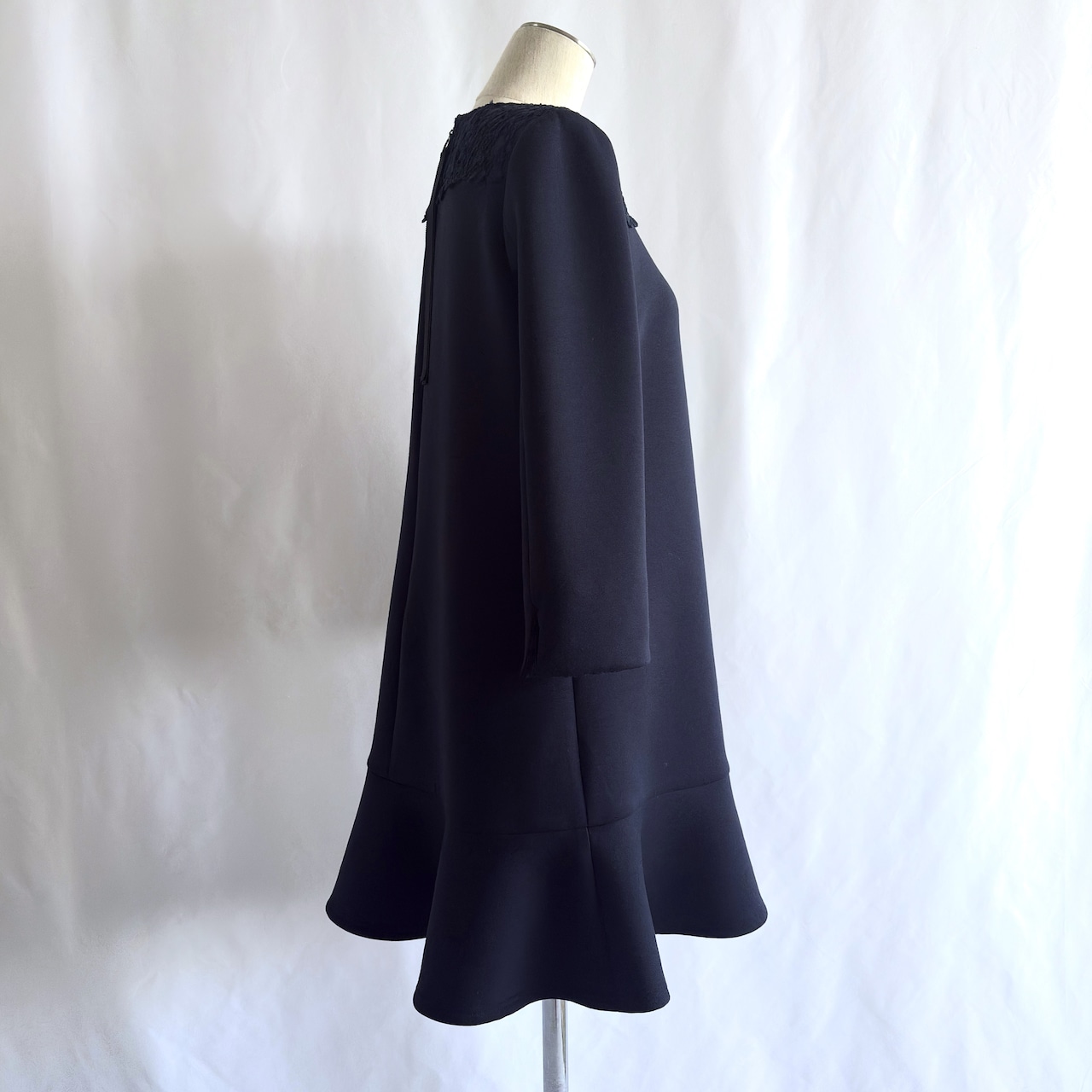 後ろファスナーには長めのリボンが付いてるので、着脱のしやすさも魅力です。